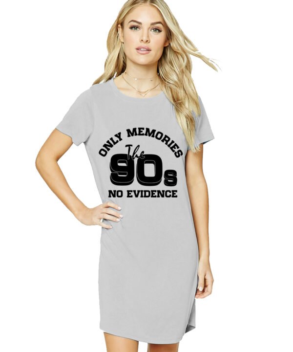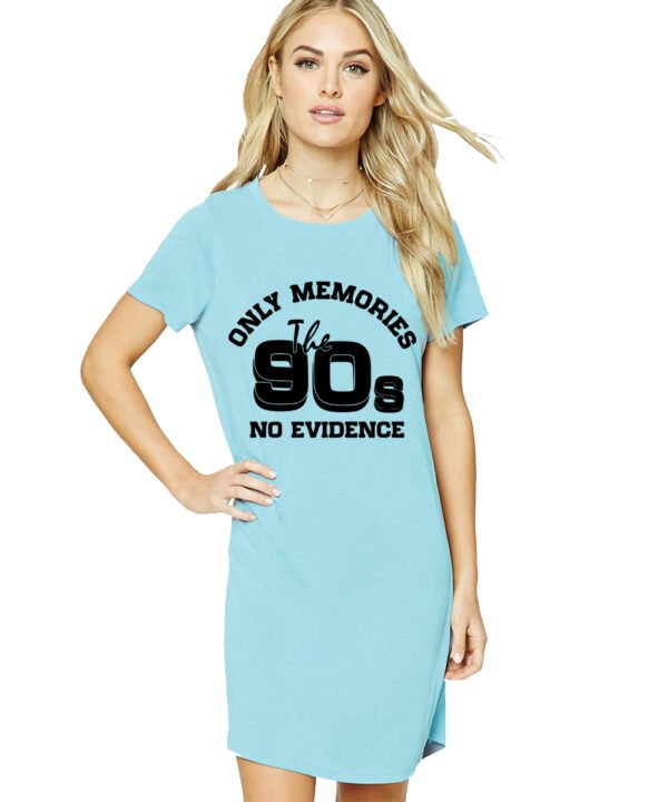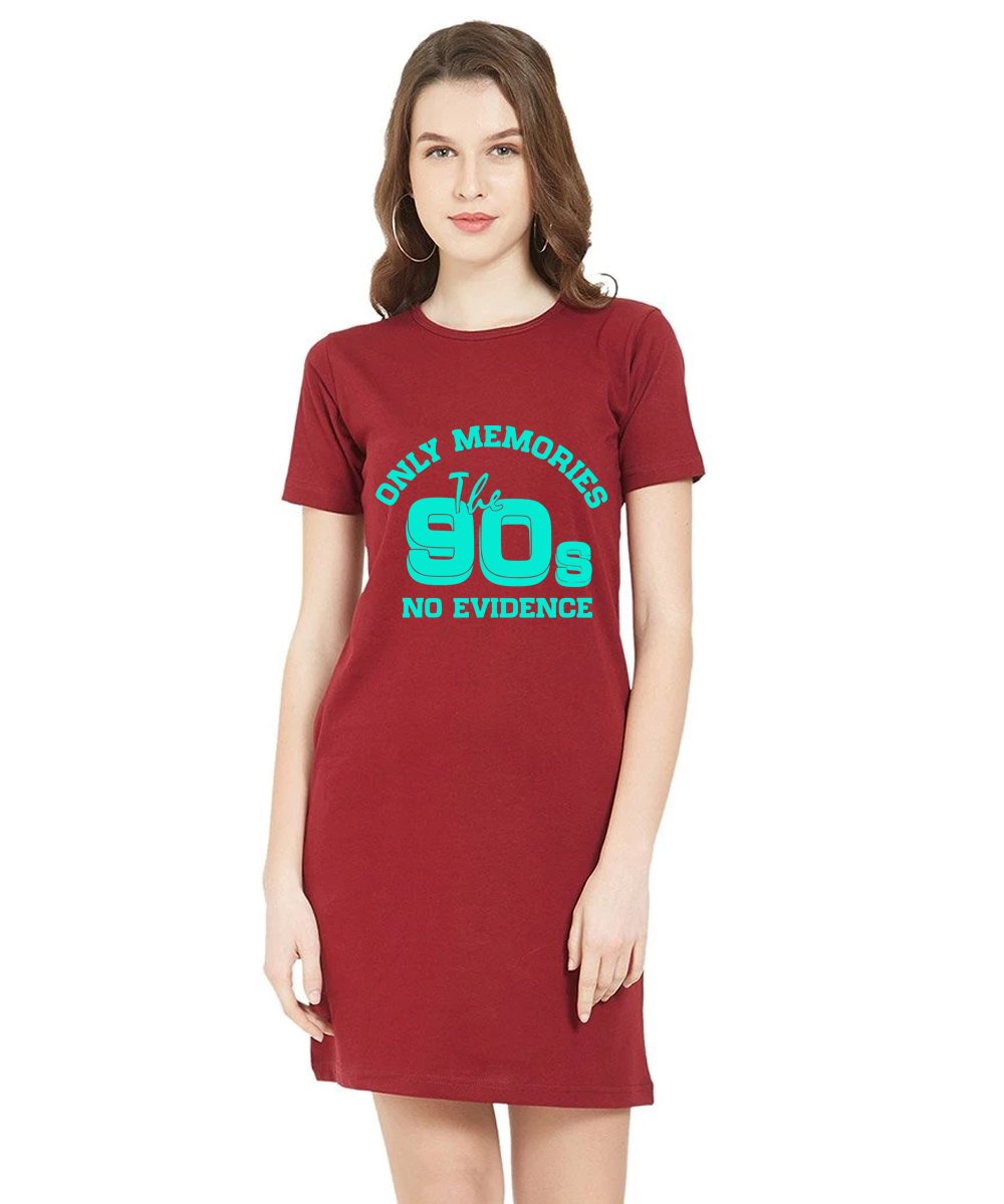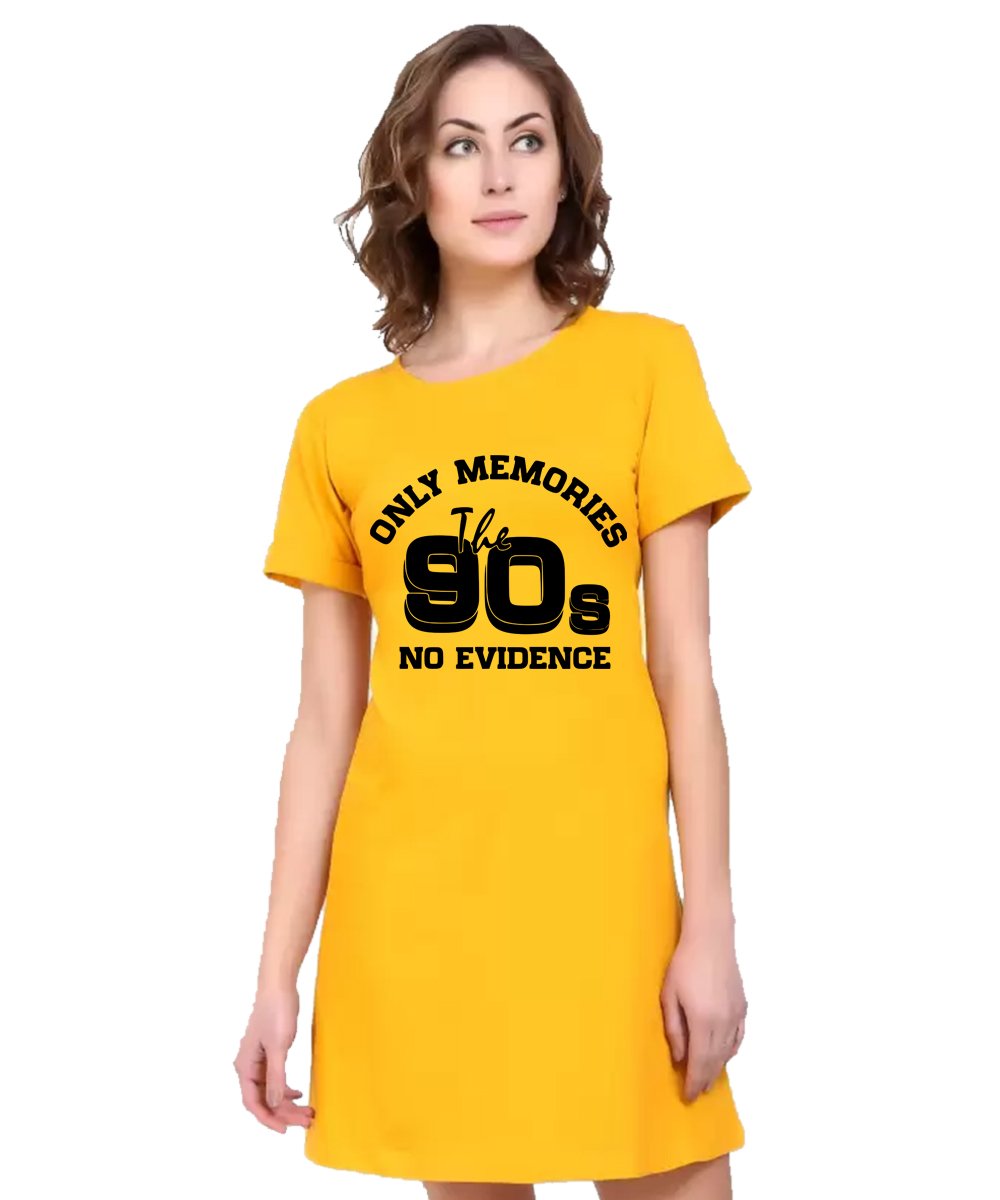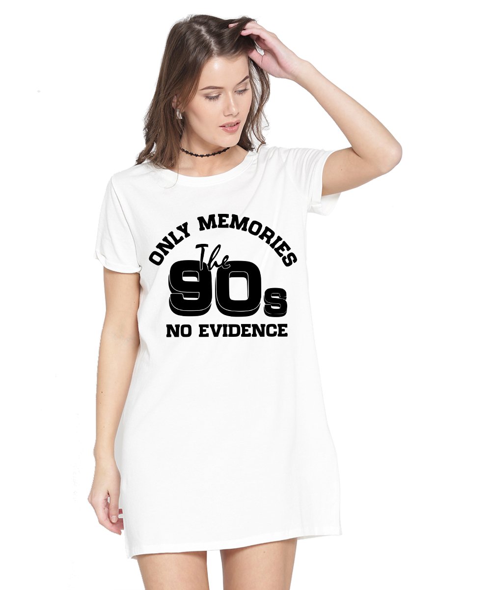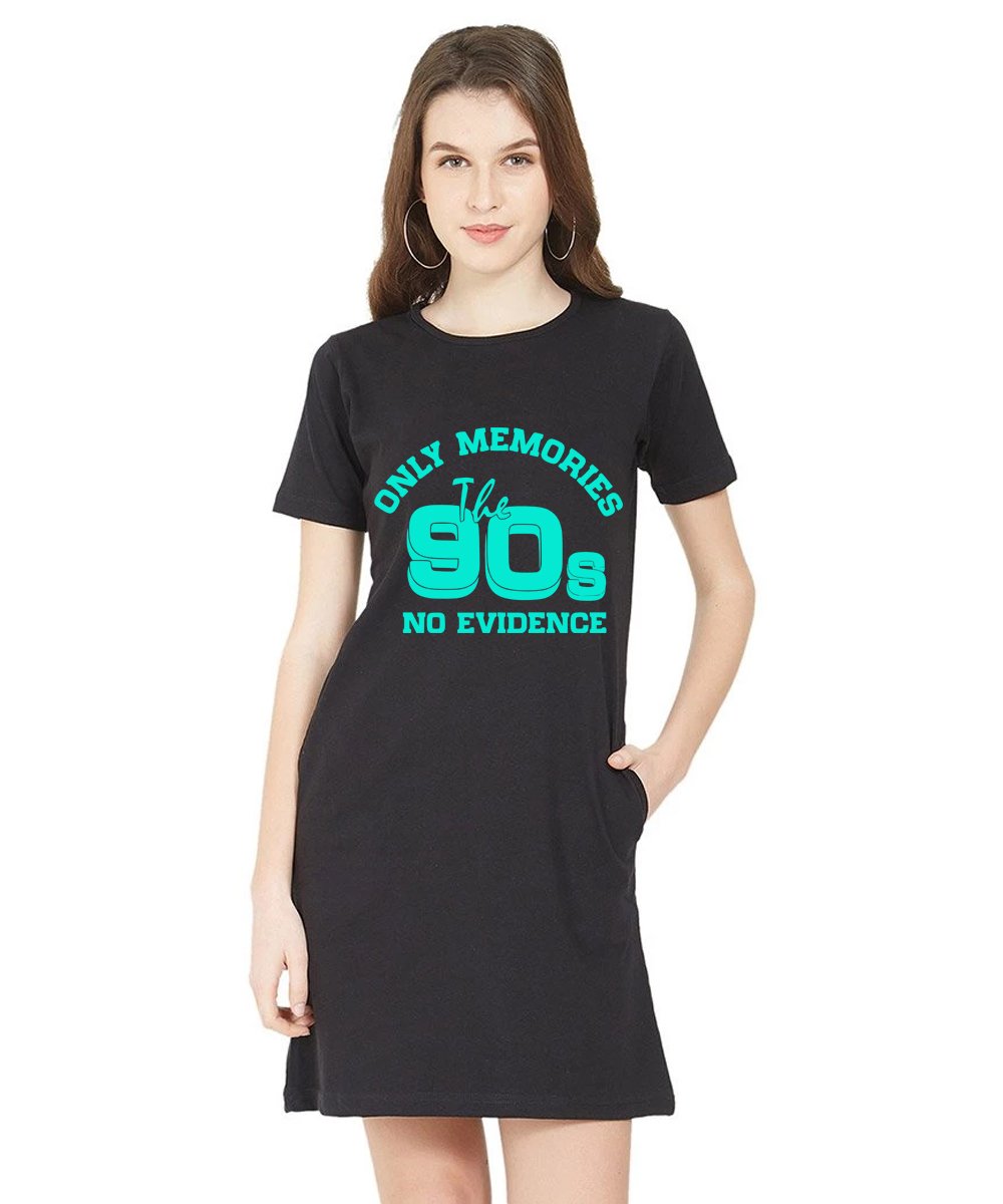 Caseria Women's Cotton Biowash Graphic Printed T-Shirt Dress with side pockets - 90s No Evidence