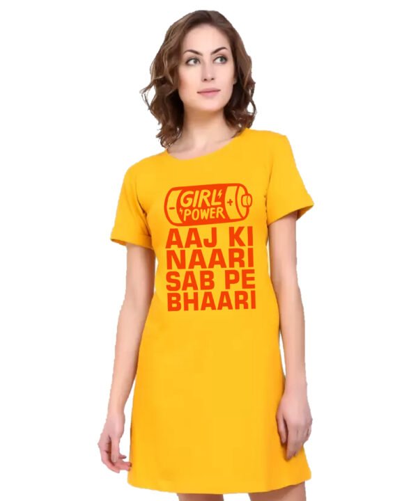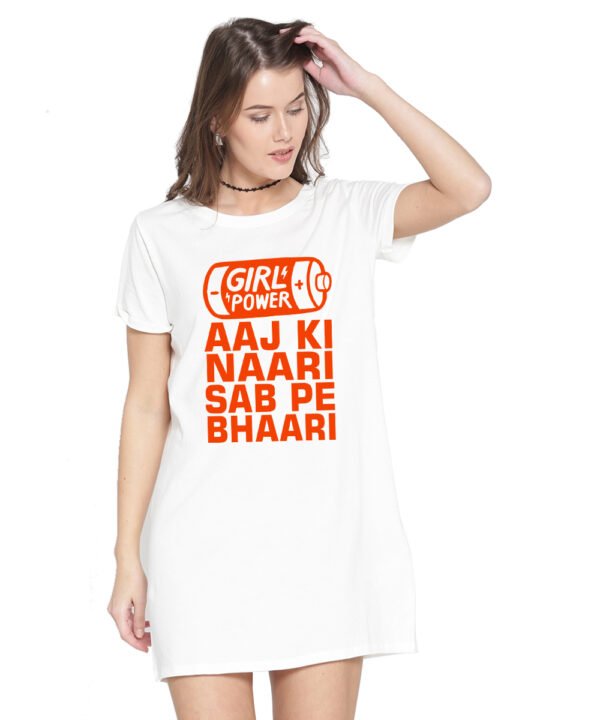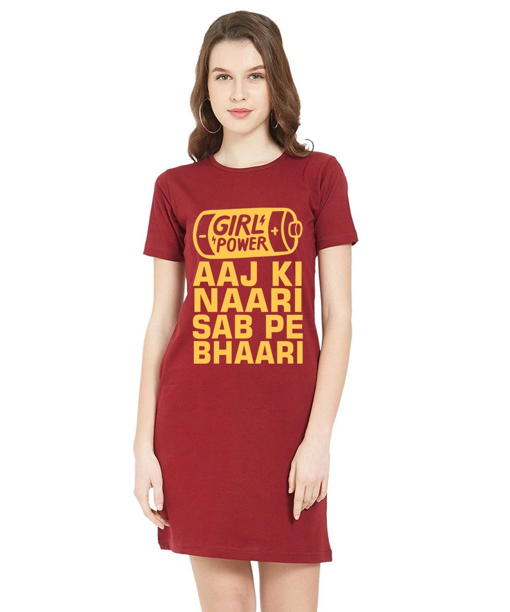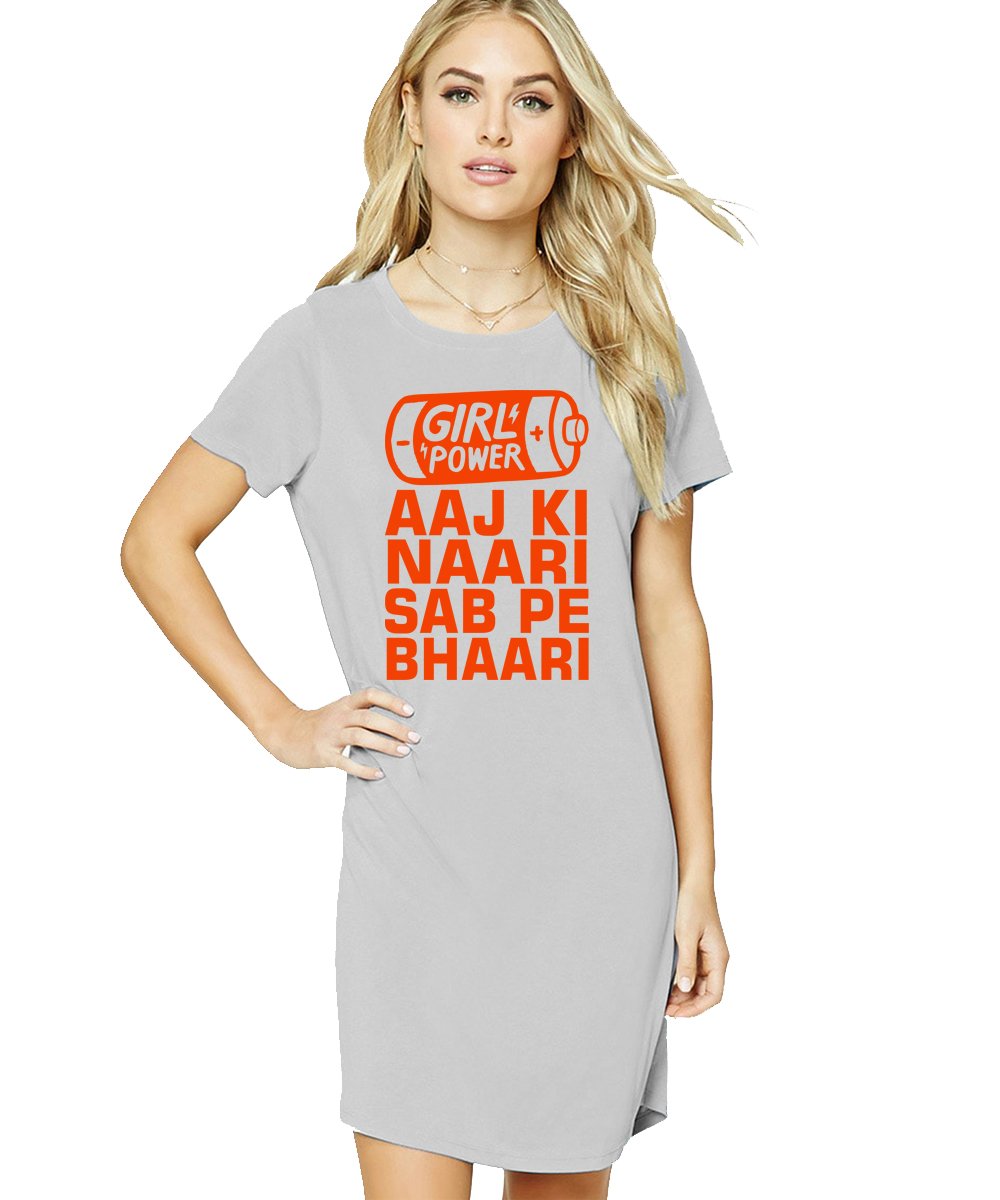 Caseria Women's Cotton Biowash Graphic Printed T-Shirt Dress with side pockets - Aaj Ki Naari