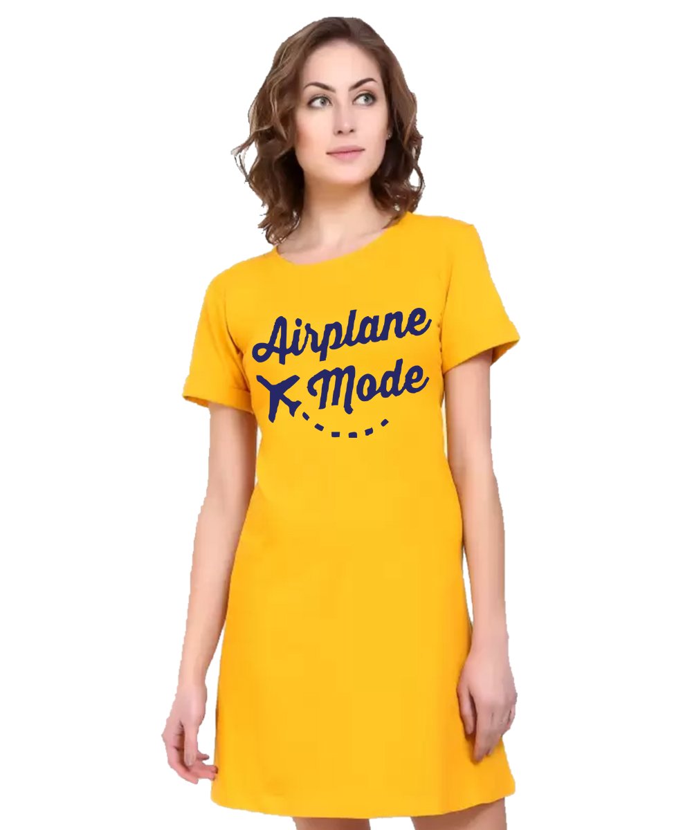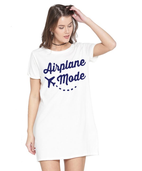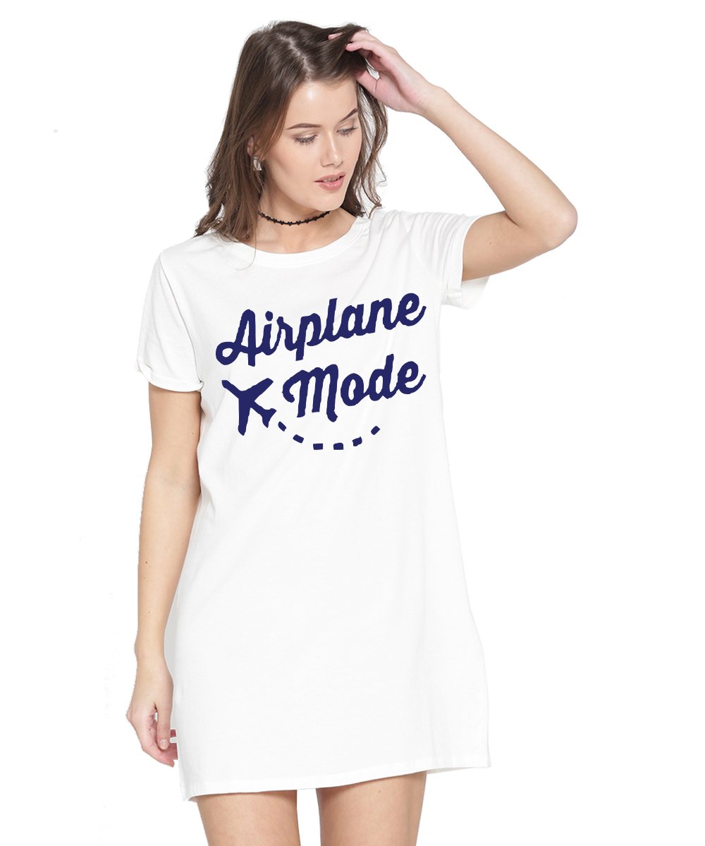 Caseria Women's Cotton Biowash Graphic Printed T-Shirt Dress with side pockets - Airplane Mode