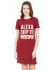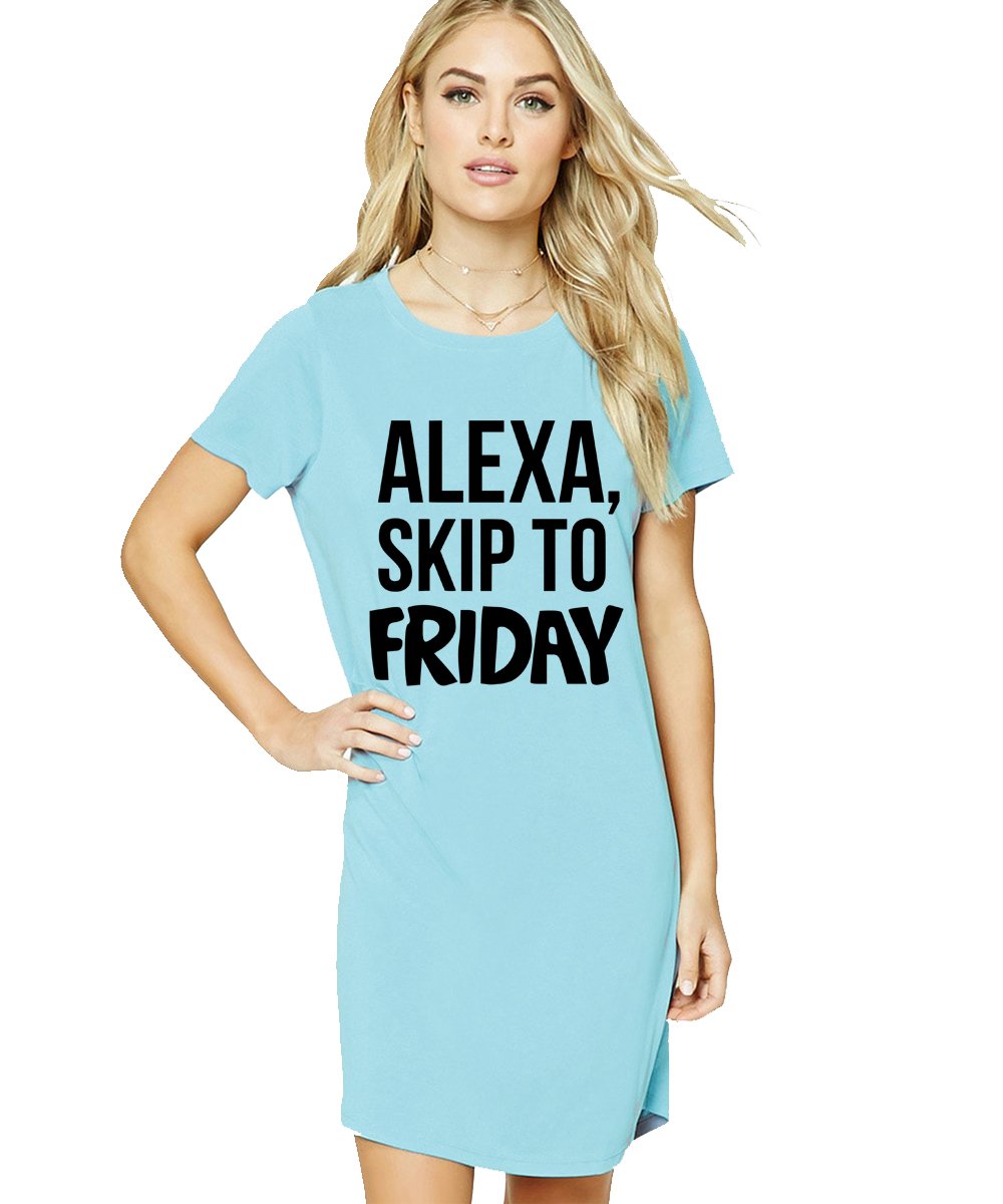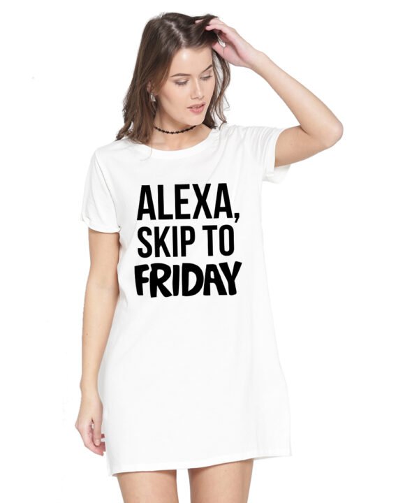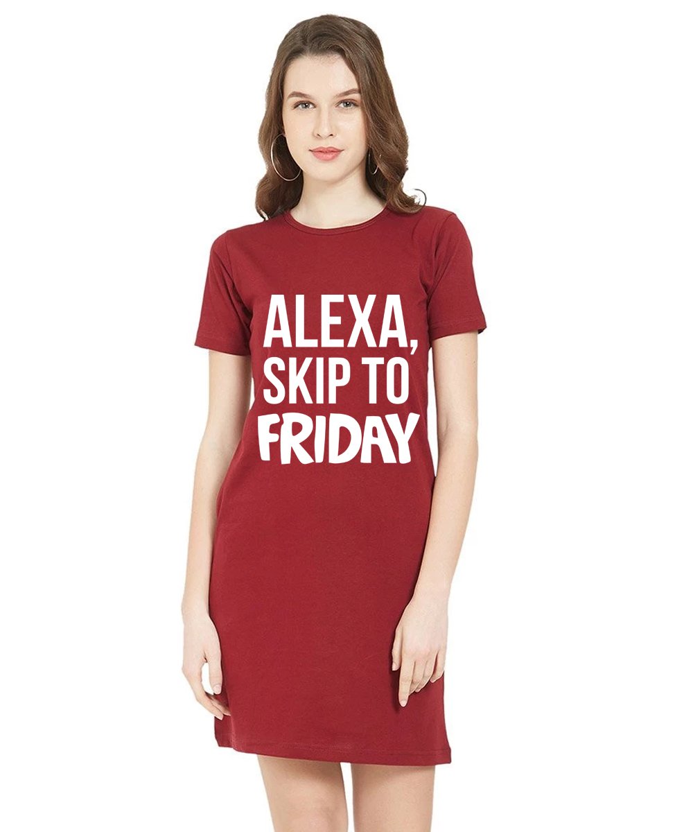 Caseria Women's Cotton Biowash Graphic Printed T-Shirt Dress with side pockets - Alexa Skip Friday