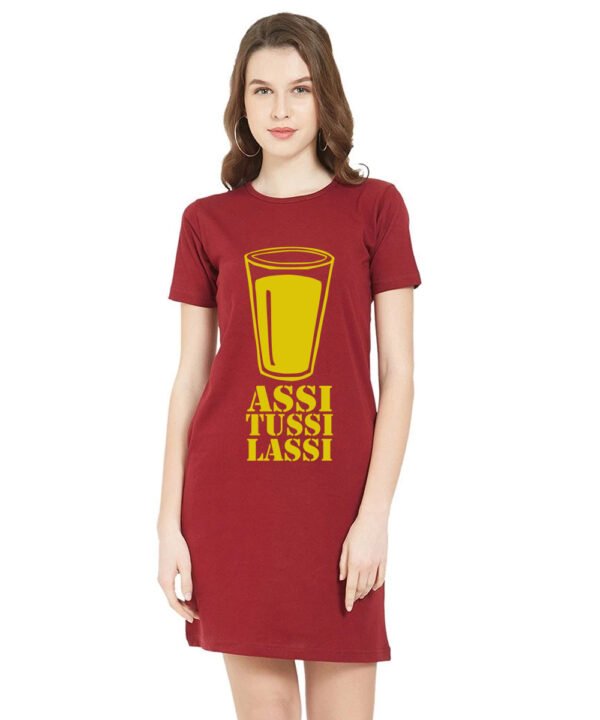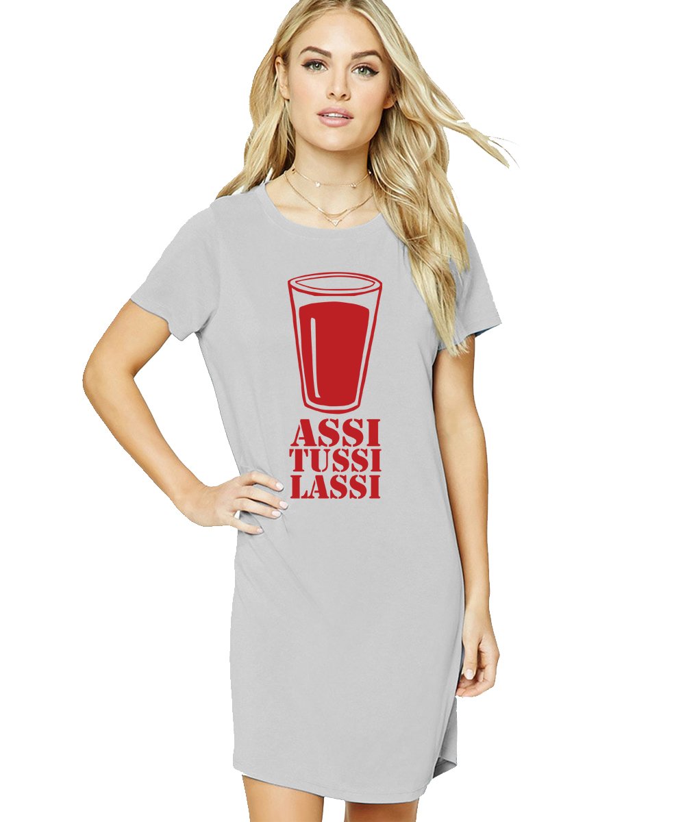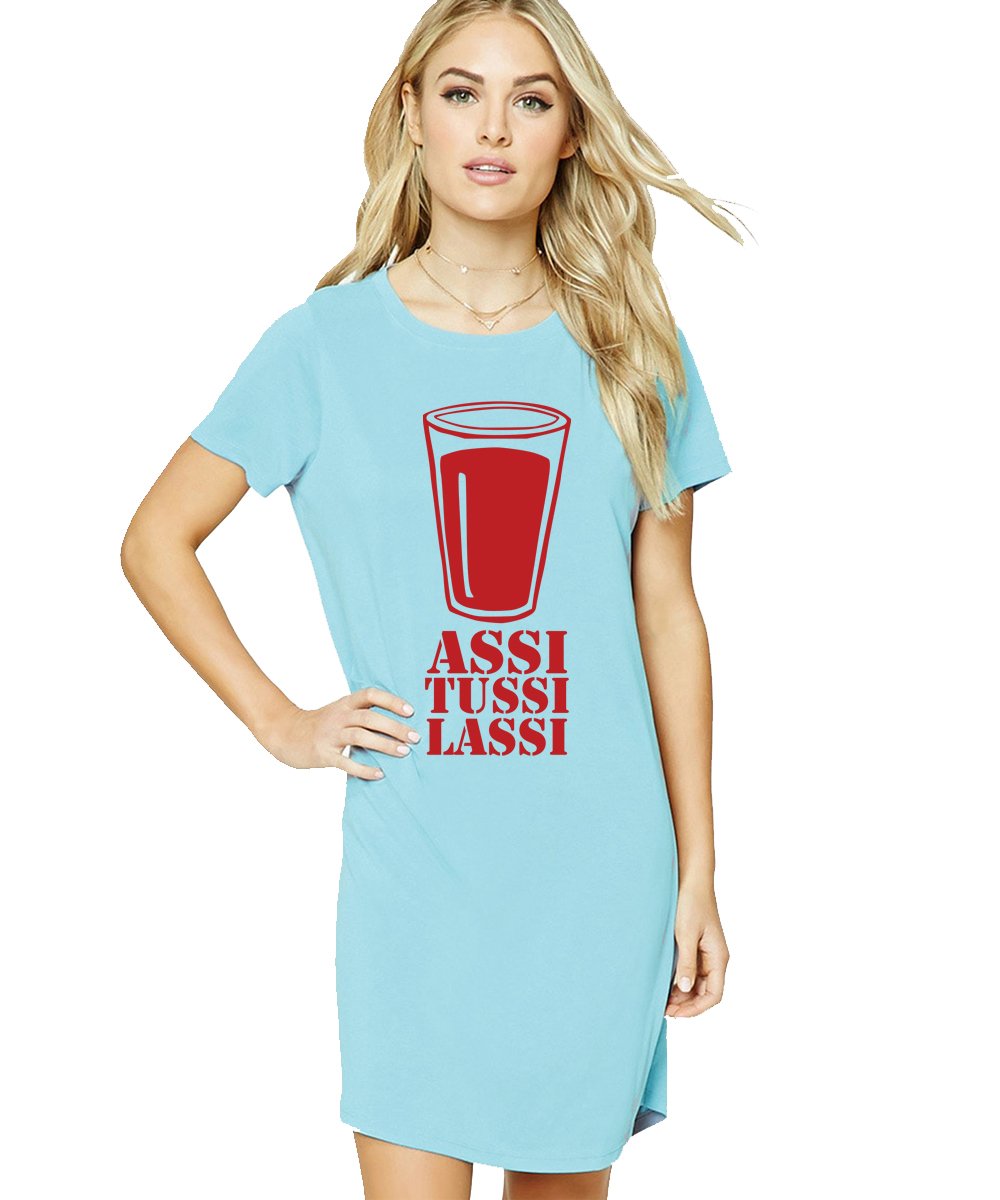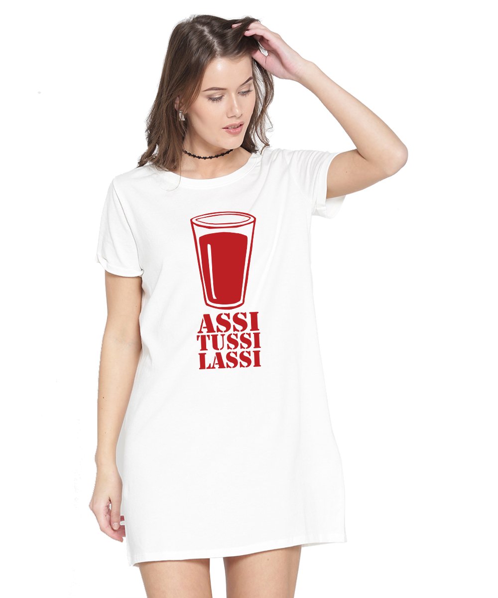 Caseria Women's Cotton Biowash Graphic Printed T-Shirt Dress with side pockets - Assi Tussi Lassi