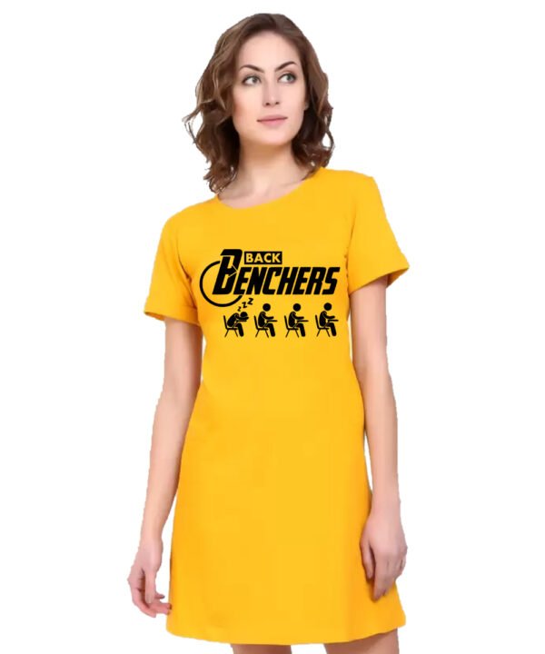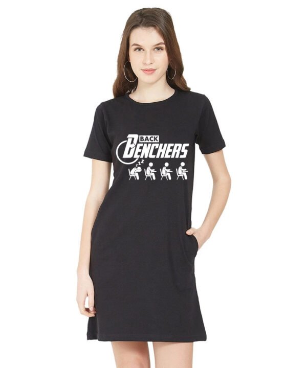Caseria Women's Cotton Biowash Graphic Printed T-Shirt Dress with side pockets - Back Benchers