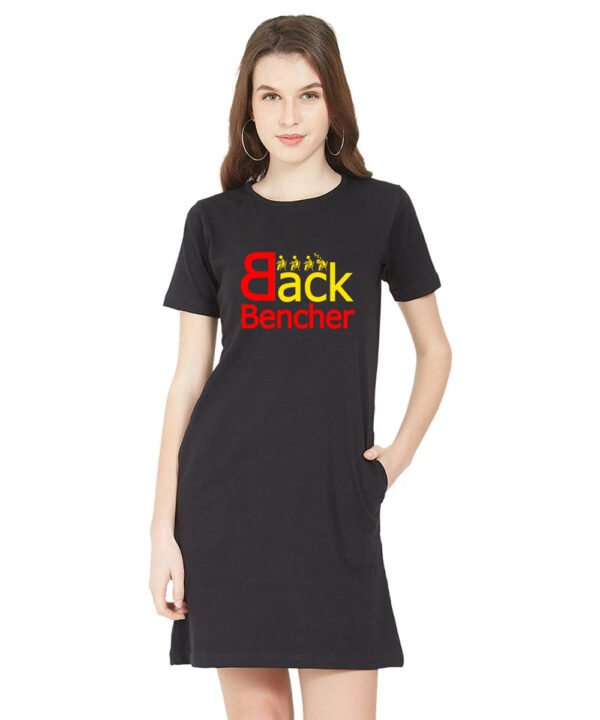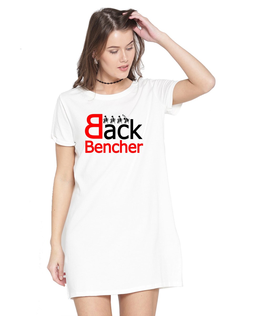 Caseria Women's Cotton Biowash Graphic Printed T-Shirt Dress with side pockets - Bancher Back