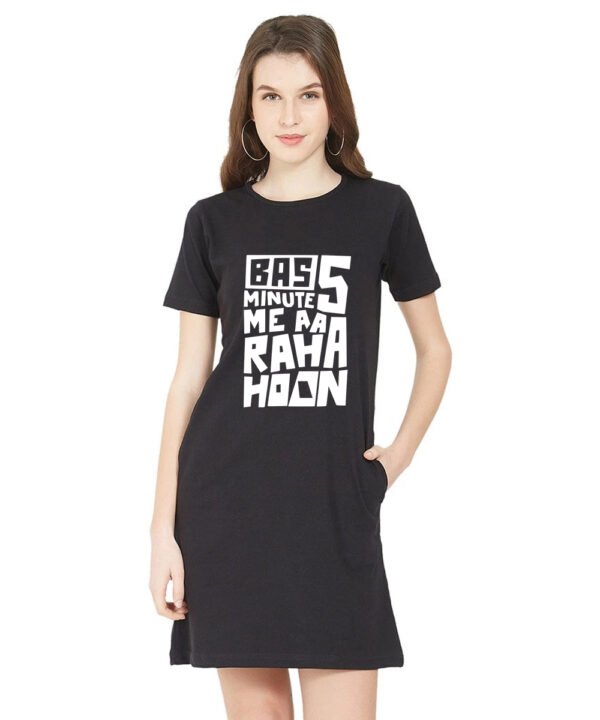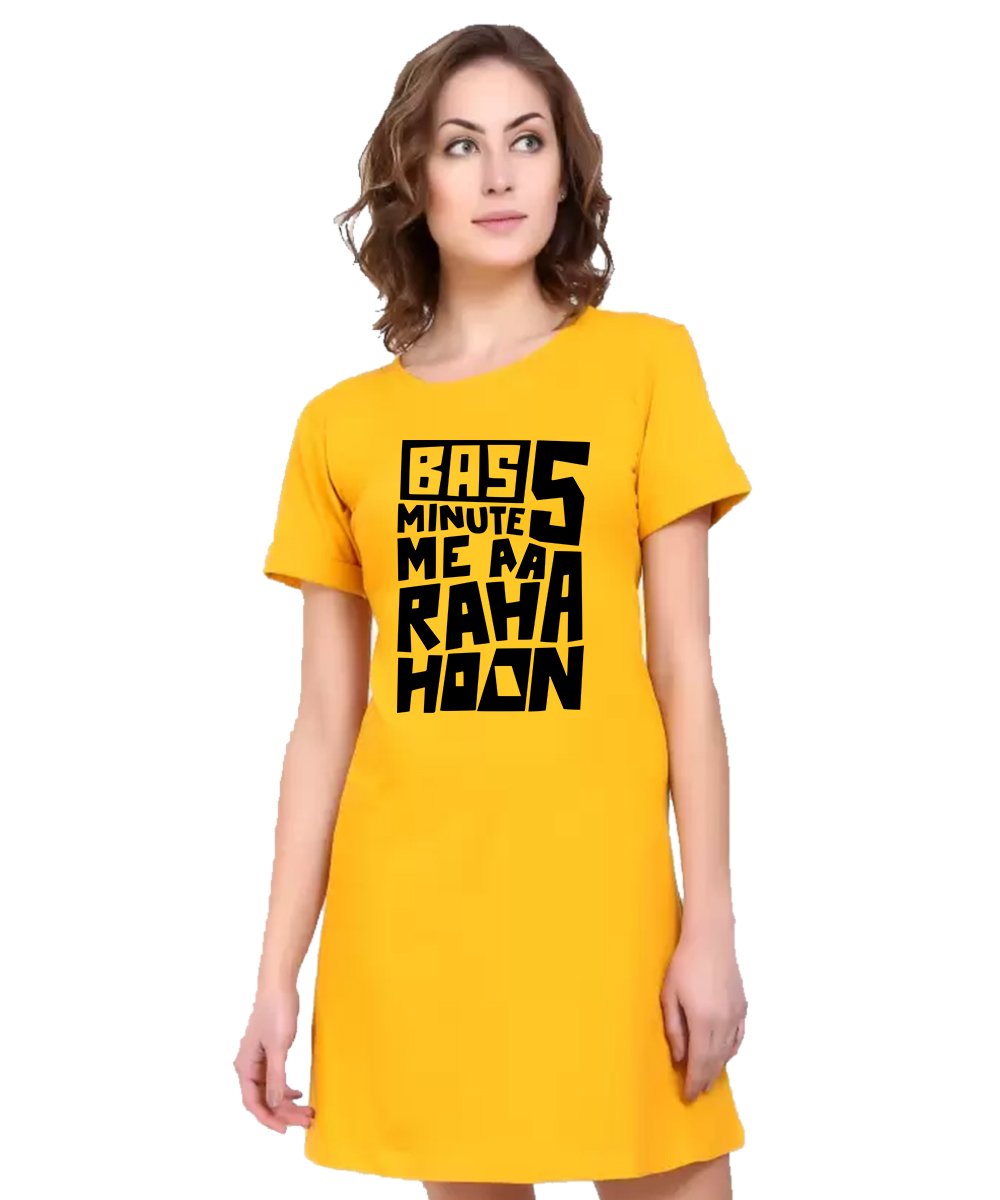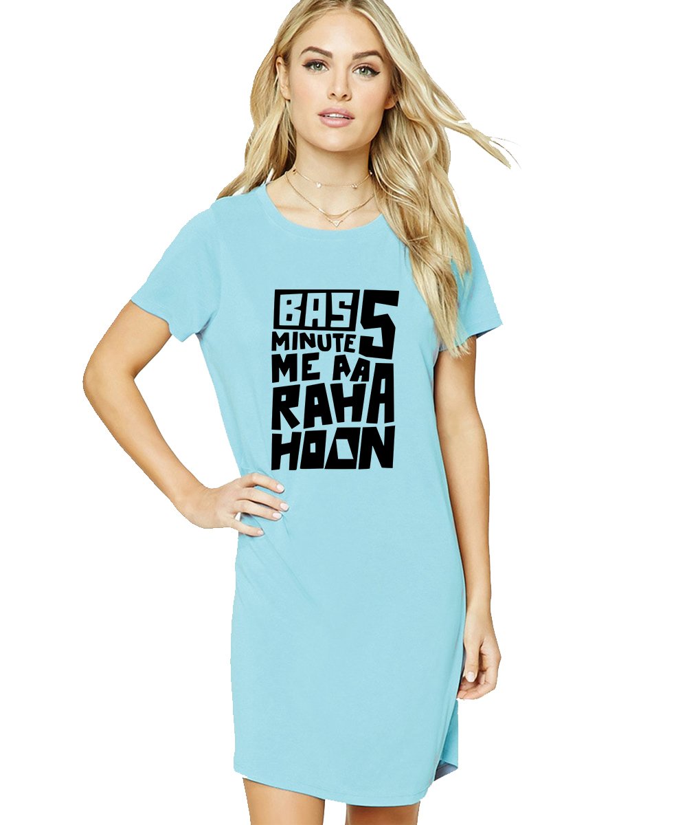 Caseria Women's Cotton Biowash Graphic Printed T-Shirt Dress with side pockets - Bas Five Mins