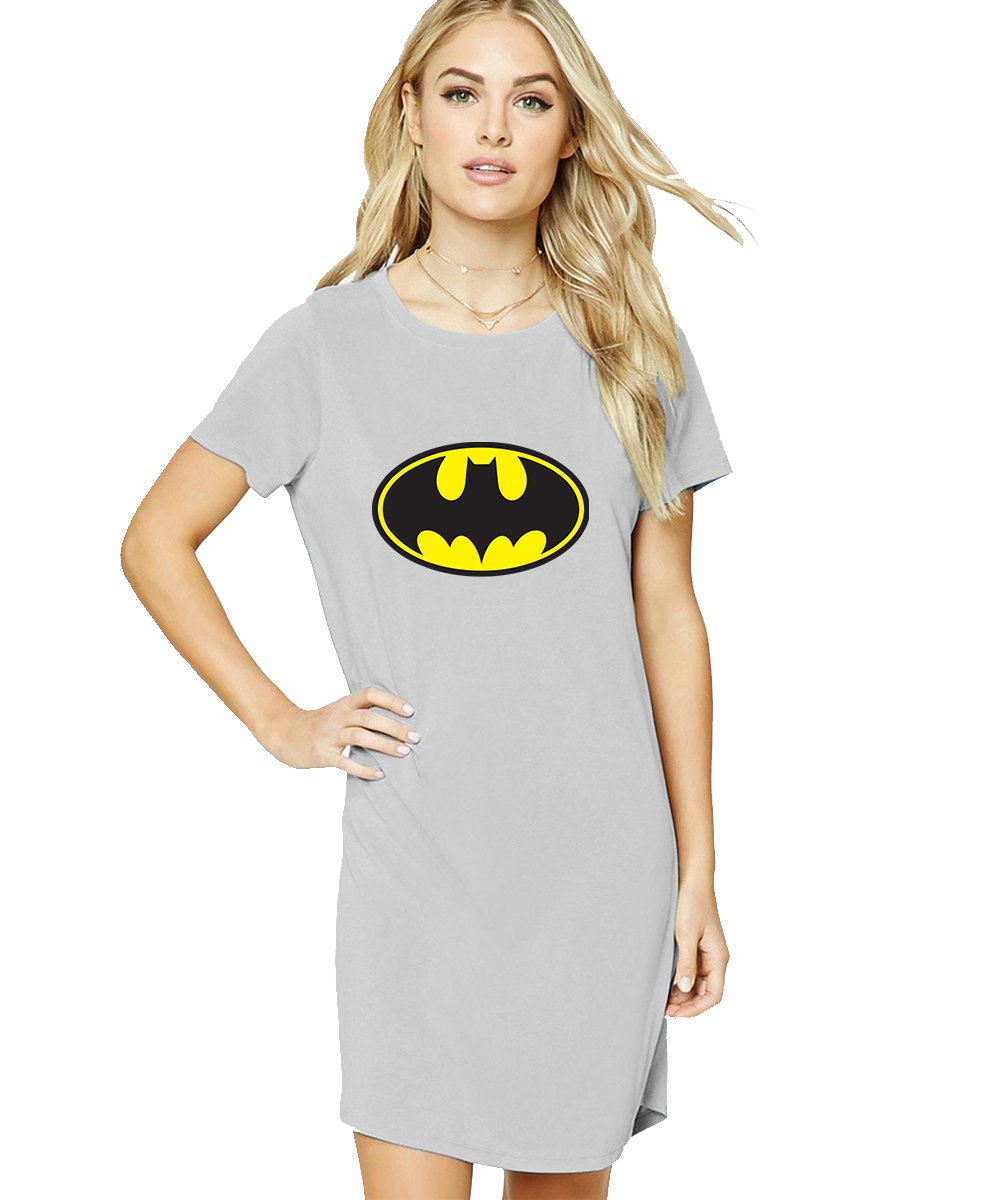 Caseria Women's Cotton Biowash Graphic Printed T-Shirt Dress with side pockets - Battm Logo Pattern
