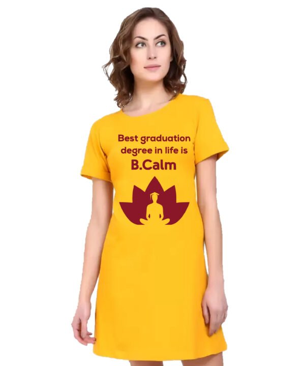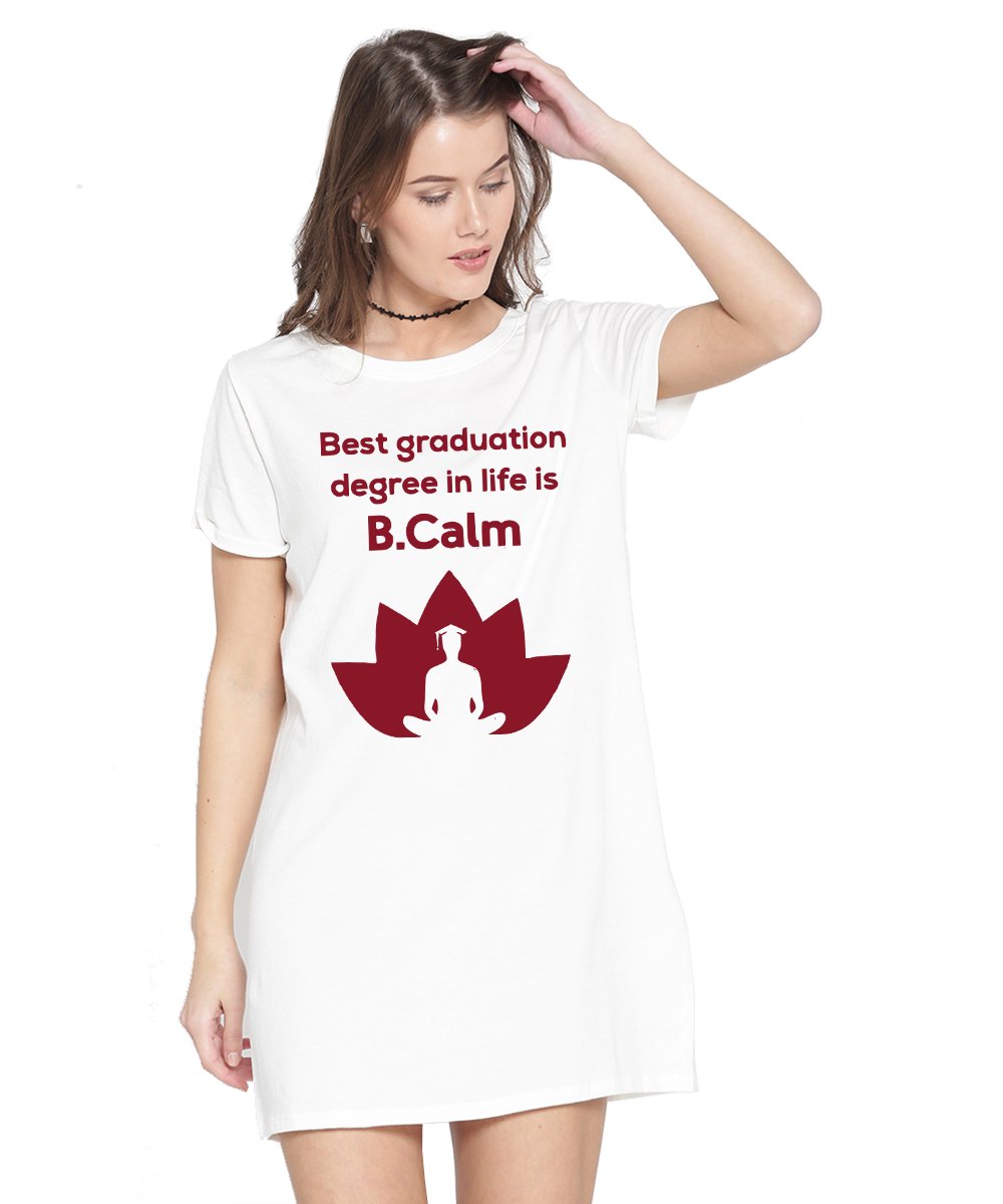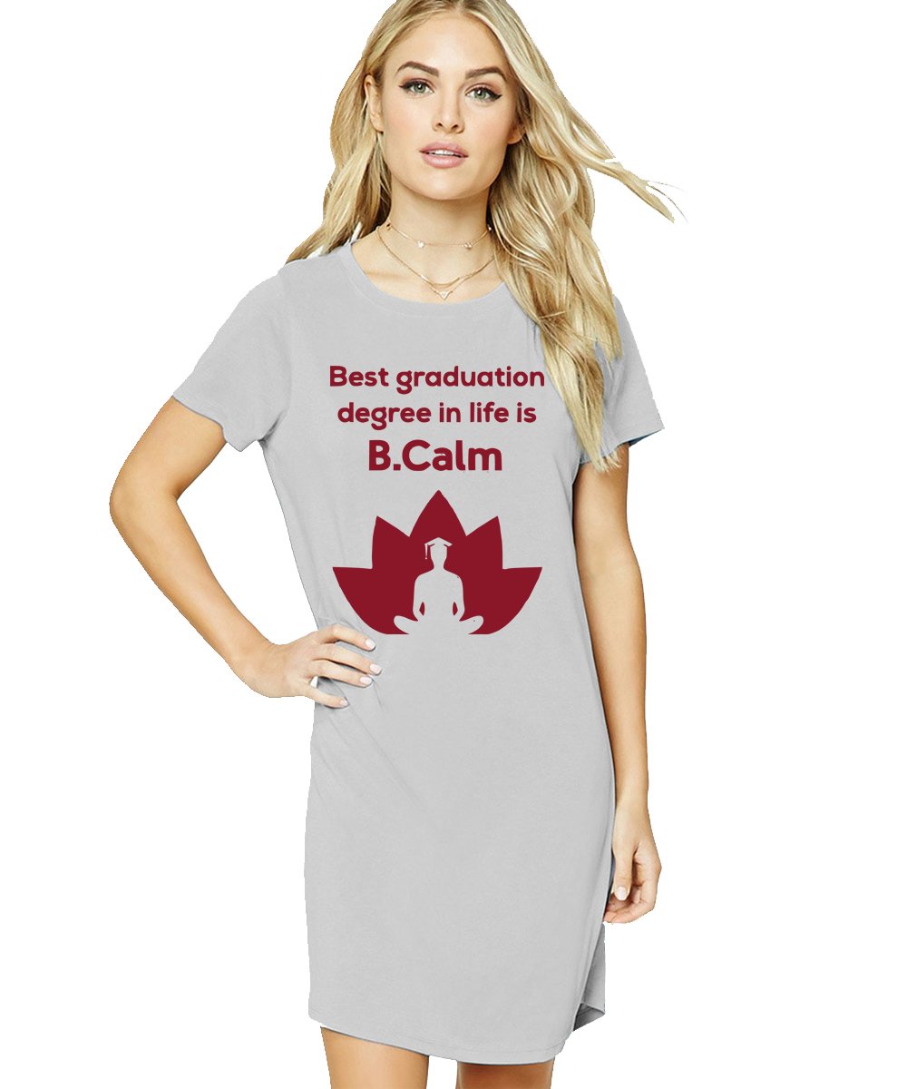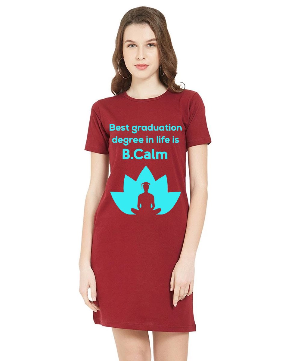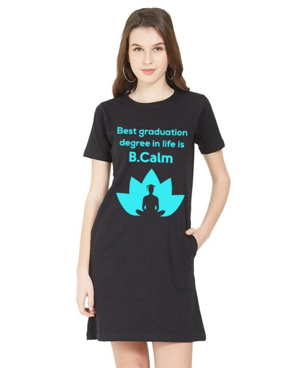 Caseria Women's Cotton Biowash Graphic Printed T-Shirt Dress with side pockets - Be Calm Best Graduation