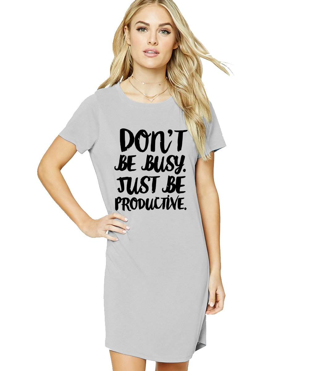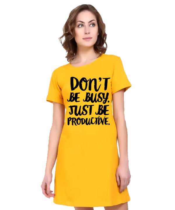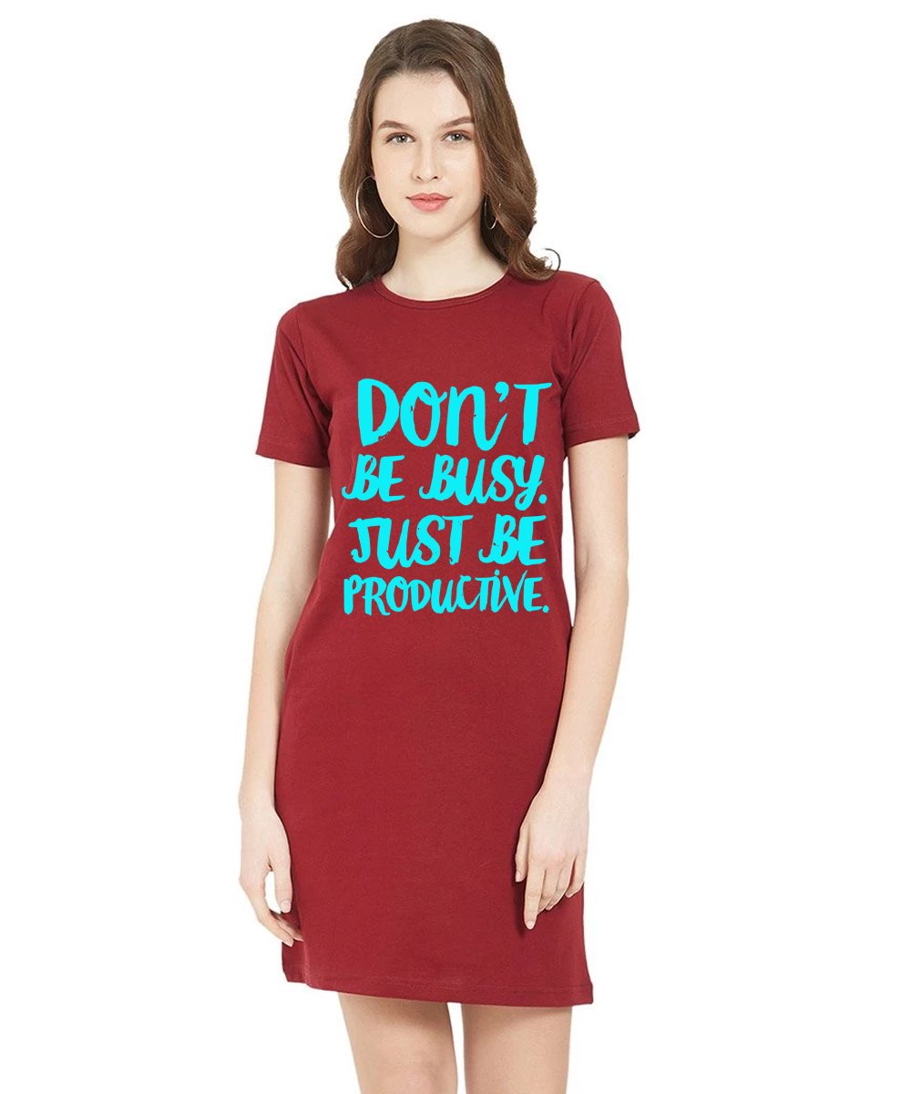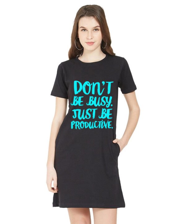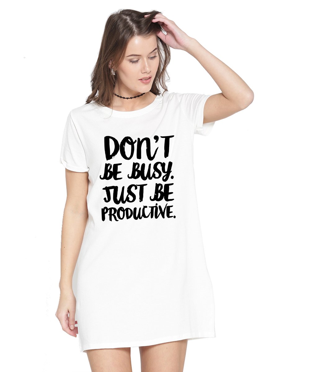 Caseria Women's Cotton Biowash Graphic Printed T-Shirt Dress with side pockets - Be Productive