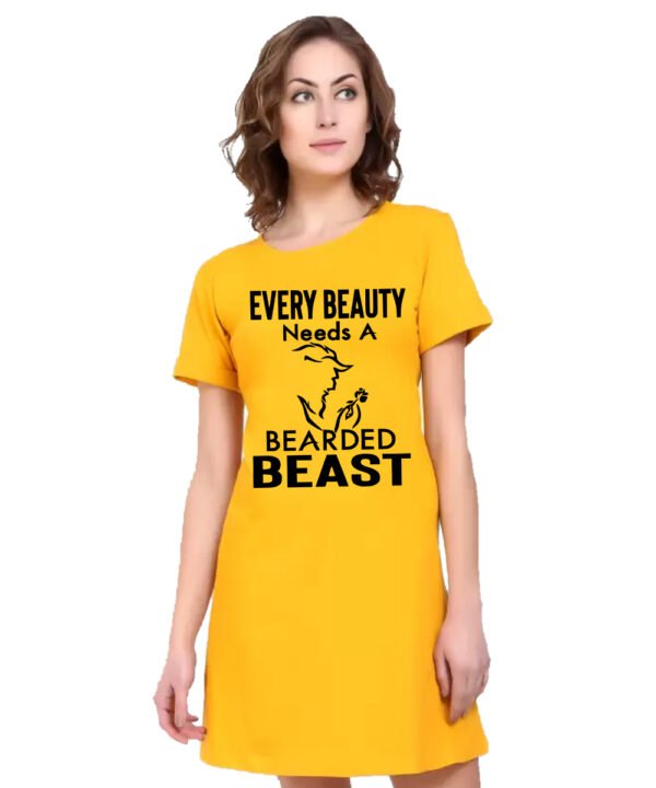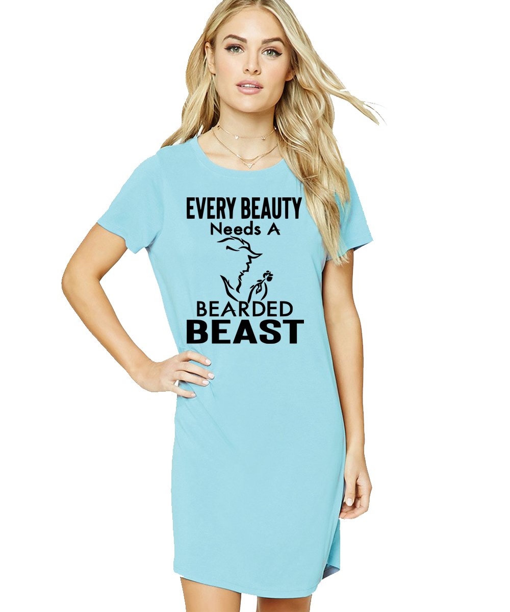 Caseria Women's Cotton Biowash Graphic Printed T-Shirt Dress with side pockets - Beauty Needs Beast