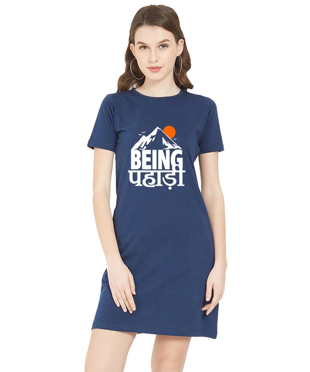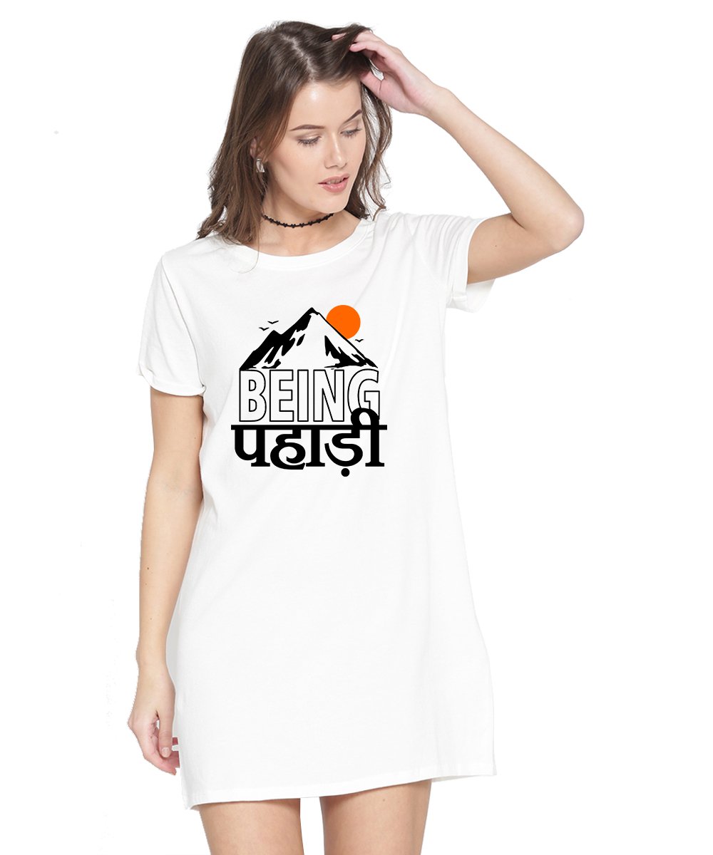 Caseria Women's Cotton Biowash Graphic Printed T-Shirt Dress with side pockets - Being Pahadi