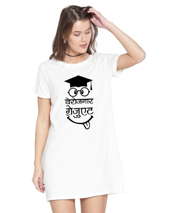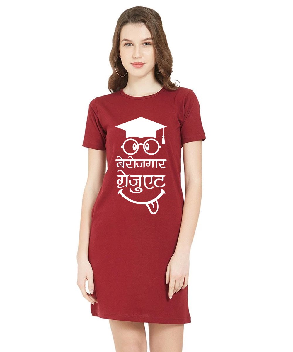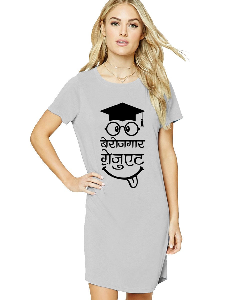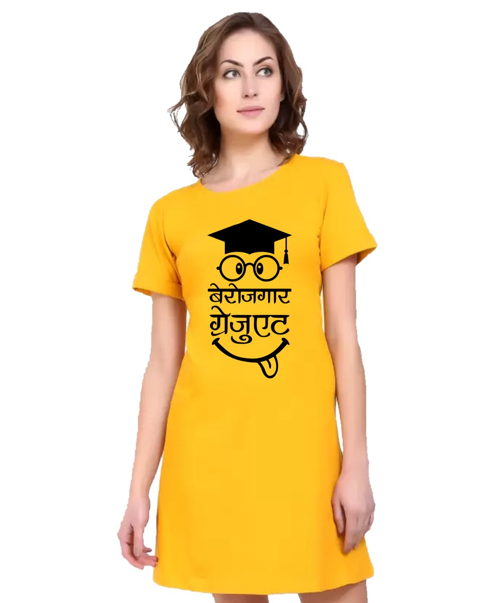 Be the first to review “Caseria Women’s Cotton Biowash Graphic Printed T-Shirt Dress with side pockets – Berozgar Graduate”