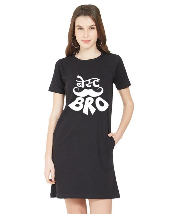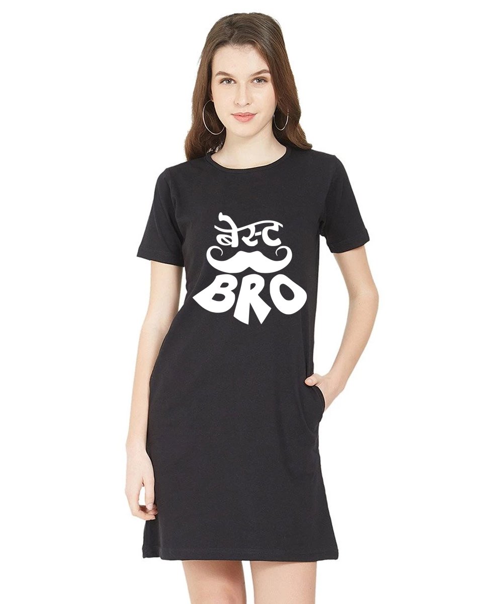 Caseria Women's Cotton Biowash Graphic Printed T-Shirt Dress with side pockets - Best Bro