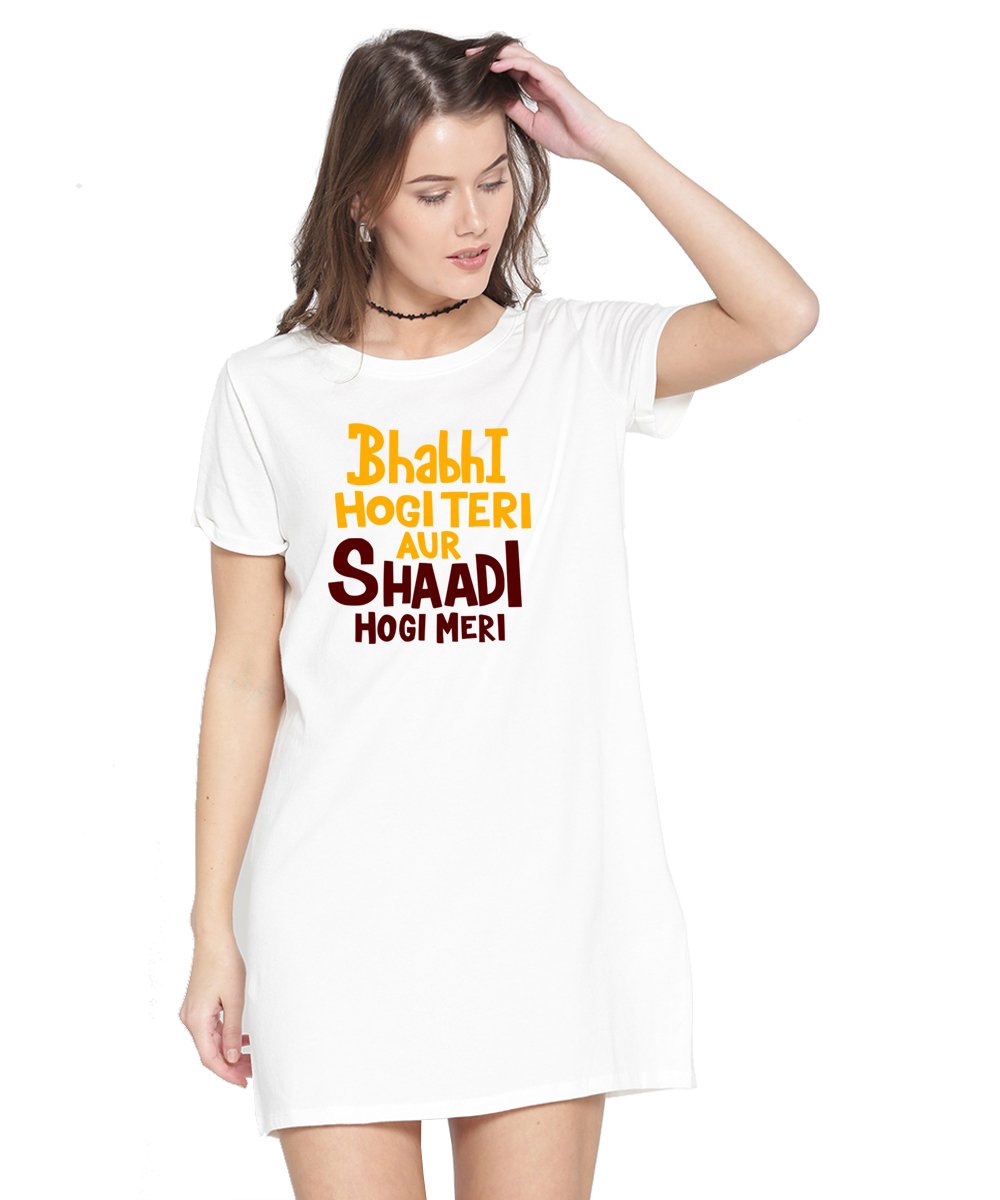 Caseria Women's Cotton Biowash Graphic Printed T-Shirt Dress with side pockets - Bhabhi Shaadi