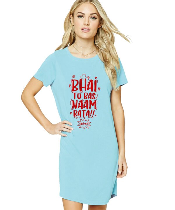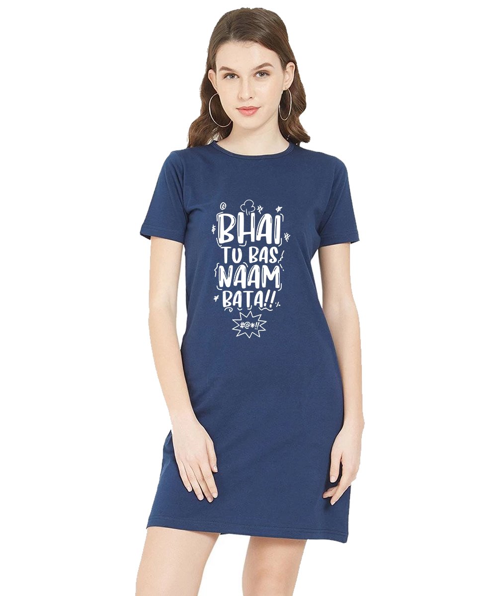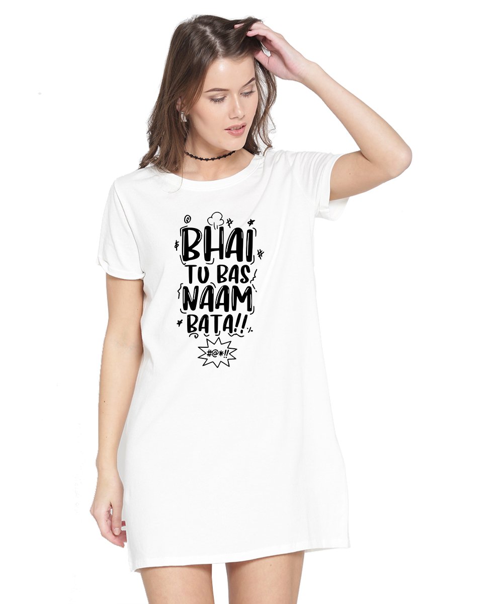 Caseria Women's Cotton Biowash Graphic Printed T-Shirt Dress with side pockets - Bhai Tu Bas