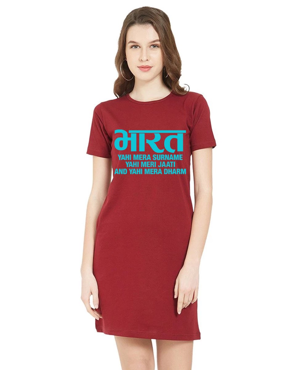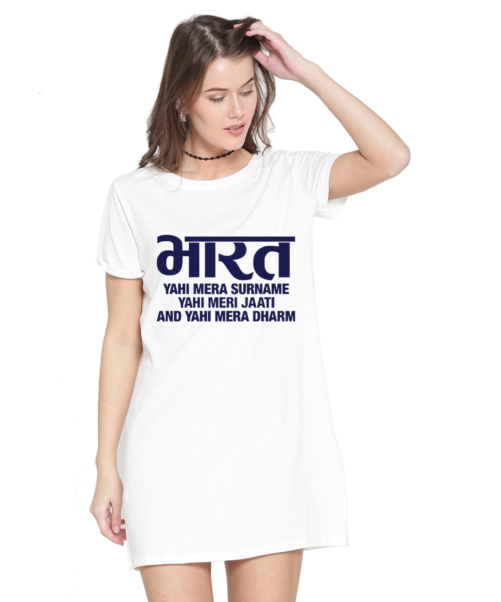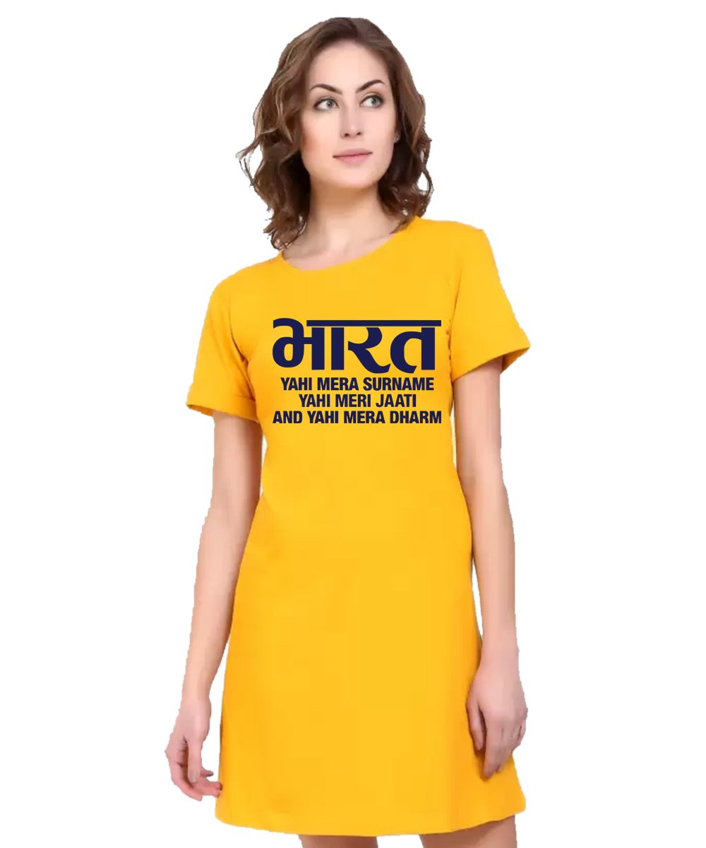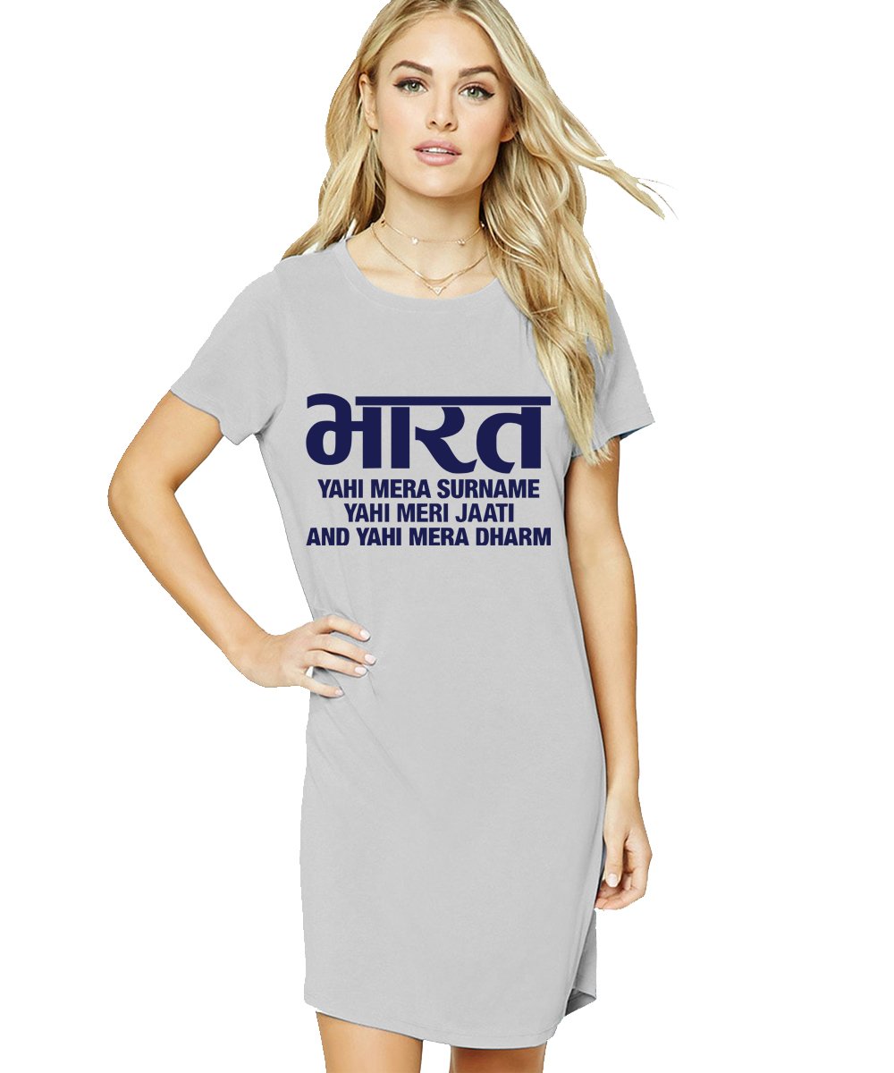 Caseria Women's Cotton Biowash Graphic Printed T-Shirt Dress with side pockets - Bharat Surname
