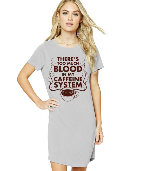 Caseria Women's Cotton Biowash Graphic Printed T-Shirt Dress with side pockets - Blood Caffeine System