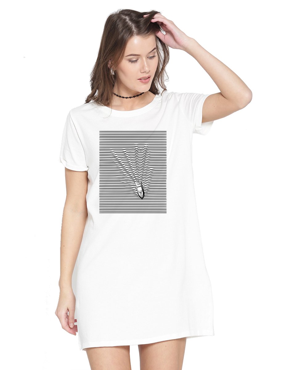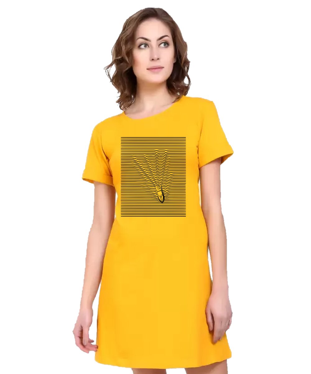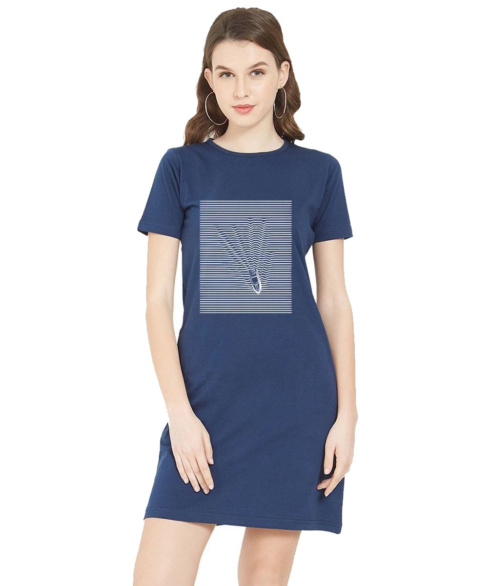 Caseria Women's Cotton Biowash Graphic Printed T-Shirt Dress with side pockets - Boat Line