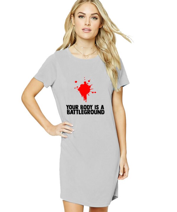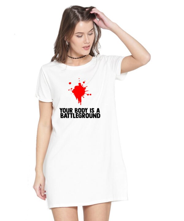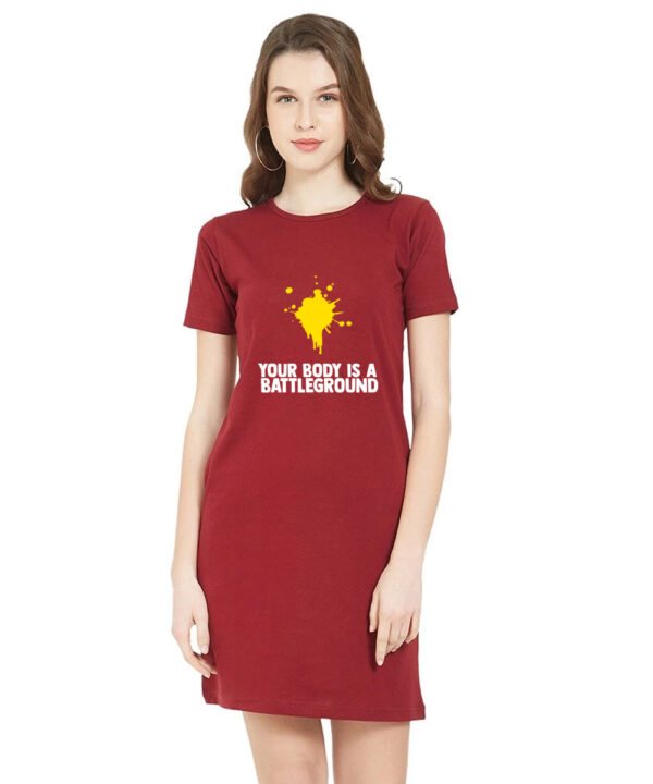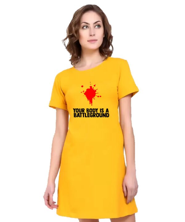 Caseria Women's Cotton Biowash Graphic Printed T-Shirt Dress with side pockets - Body Battleground