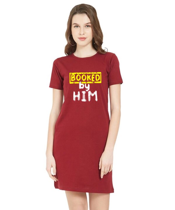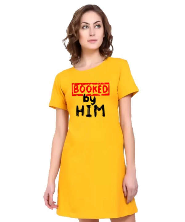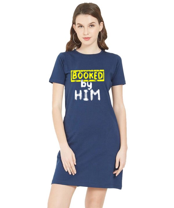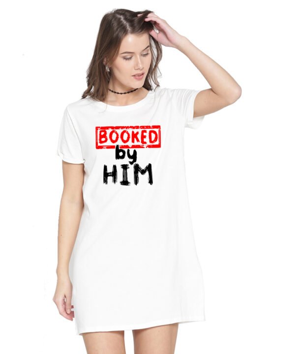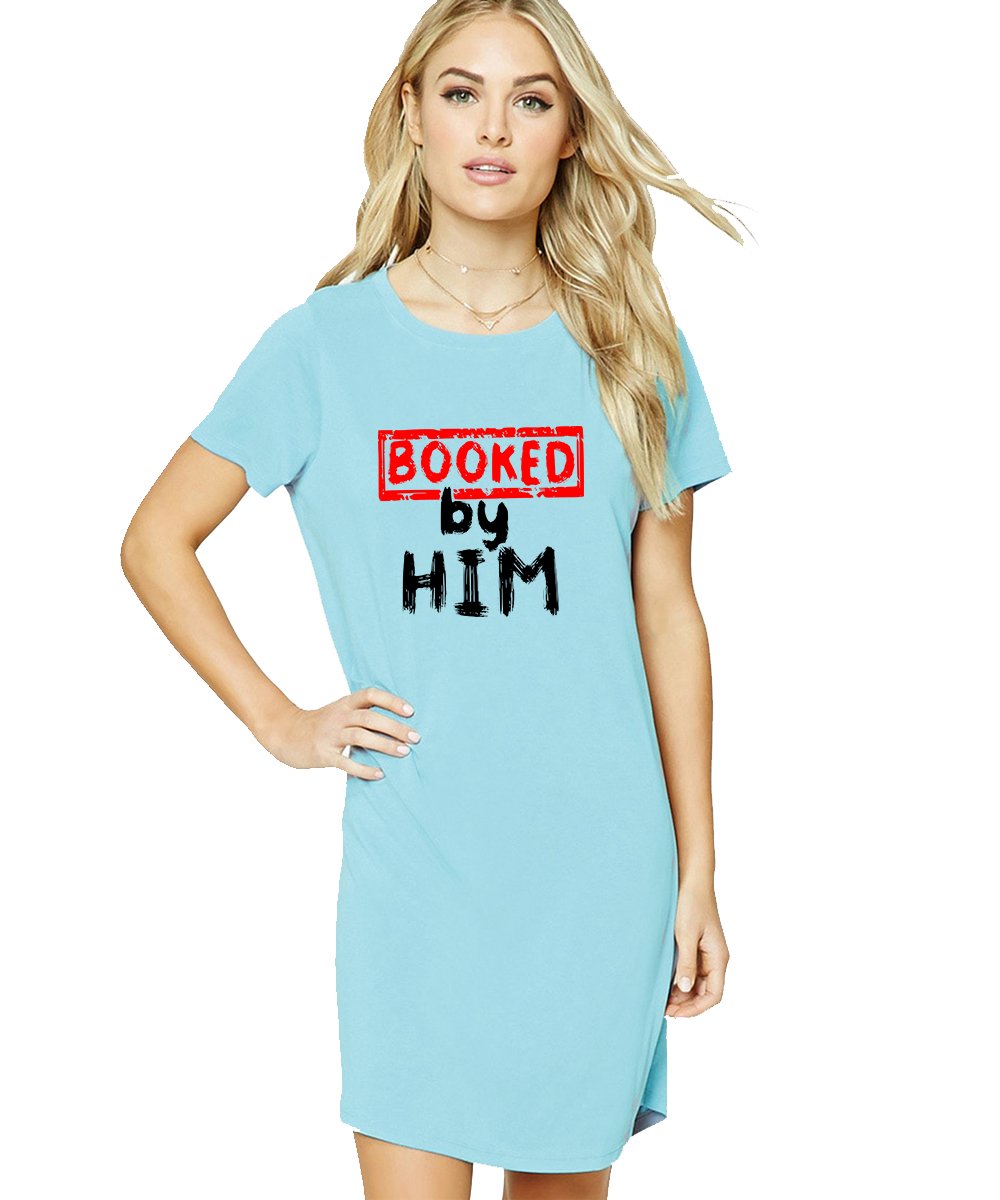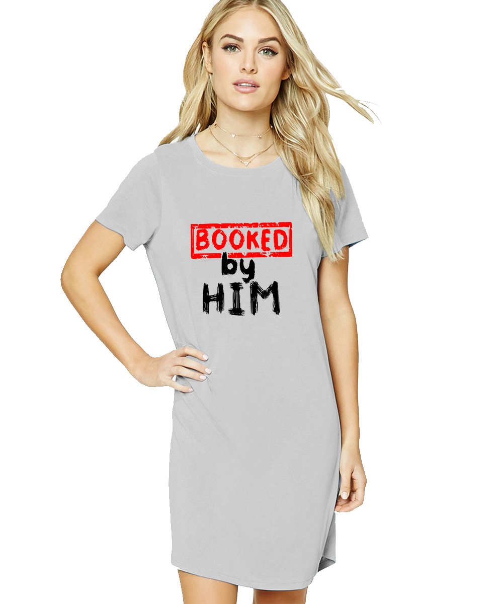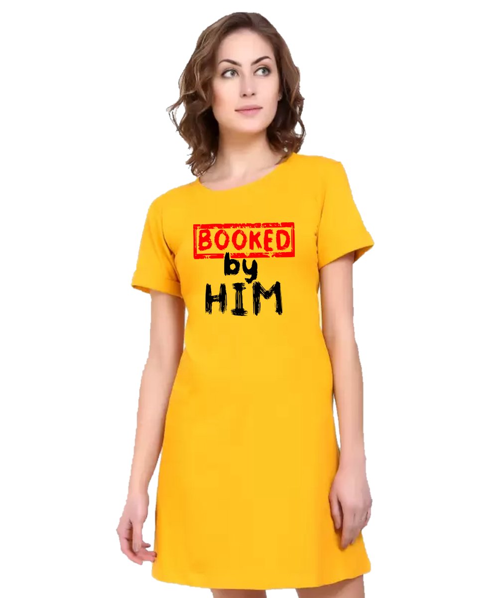Caseria Women's Cotton Biowash Graphic Printed T-Shirt Dress with side pockets - Booked Him