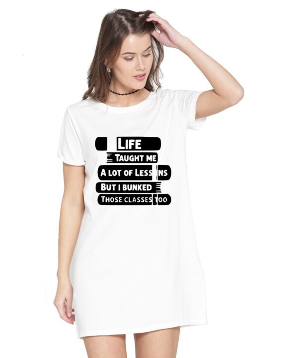 Caseria Women's Cotton Biowash Graphic Printed T-Shirt Dress with side pockets - Bunked Life Classes