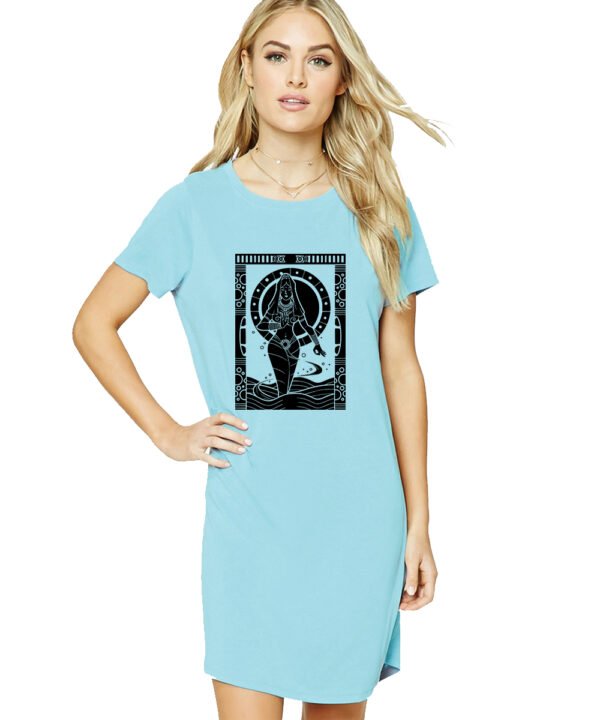 Caseria Women's Cotton Biowash Graphic Printed T-Shirt Dress with side pockets - Card Ganga