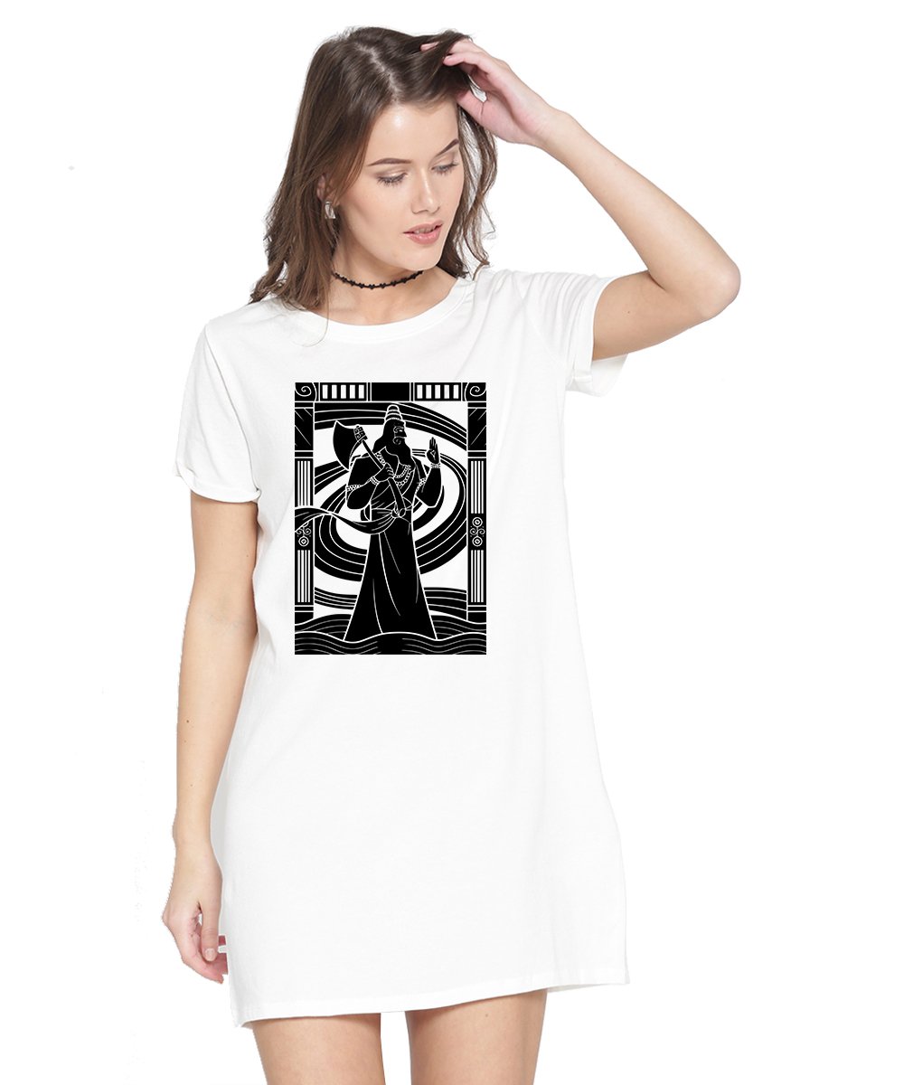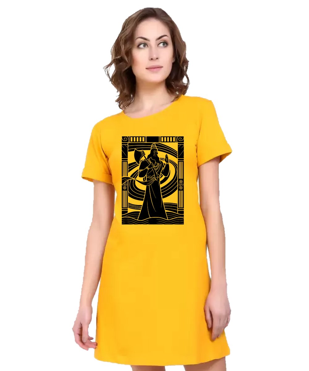 Caseria Women's Cotton Biowash Graphic Printed T-Shirt Dress with side pockets - Card Parshuram