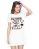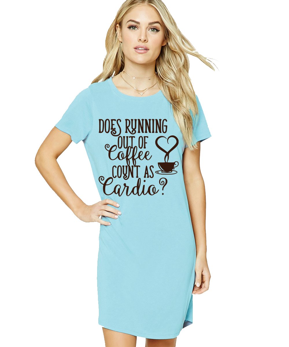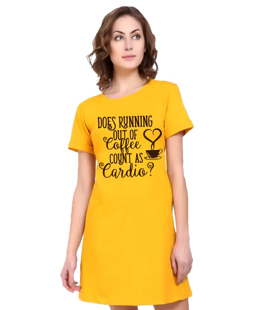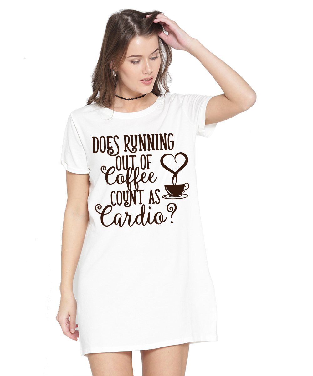 Caseria Women's Cotton Biowash Graphic Printed T-Shirt Dress with side pockets - Coffee Or Cardio