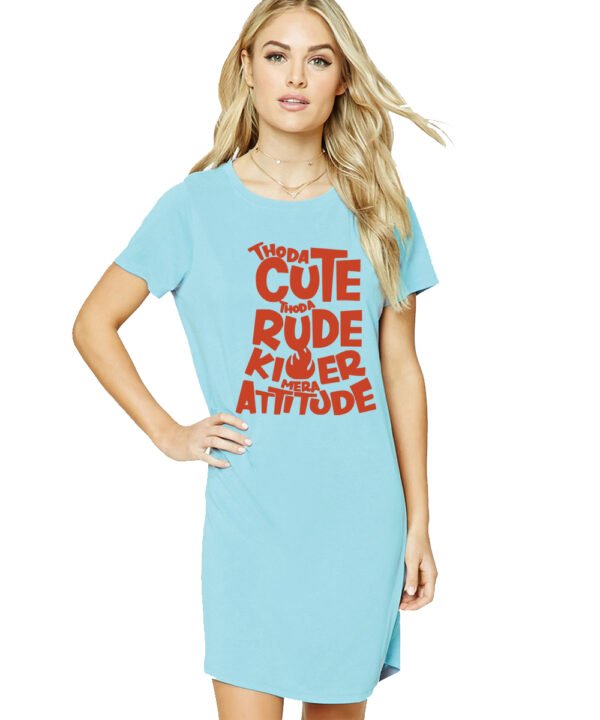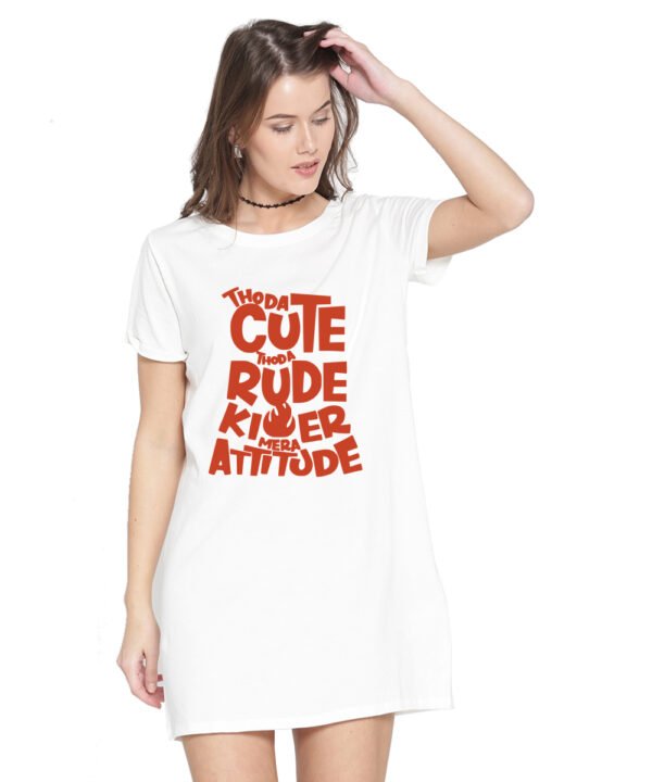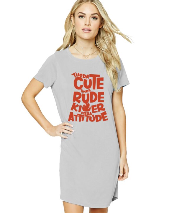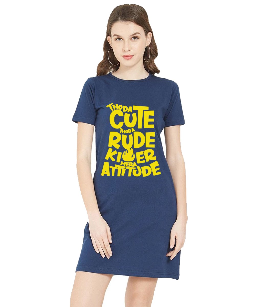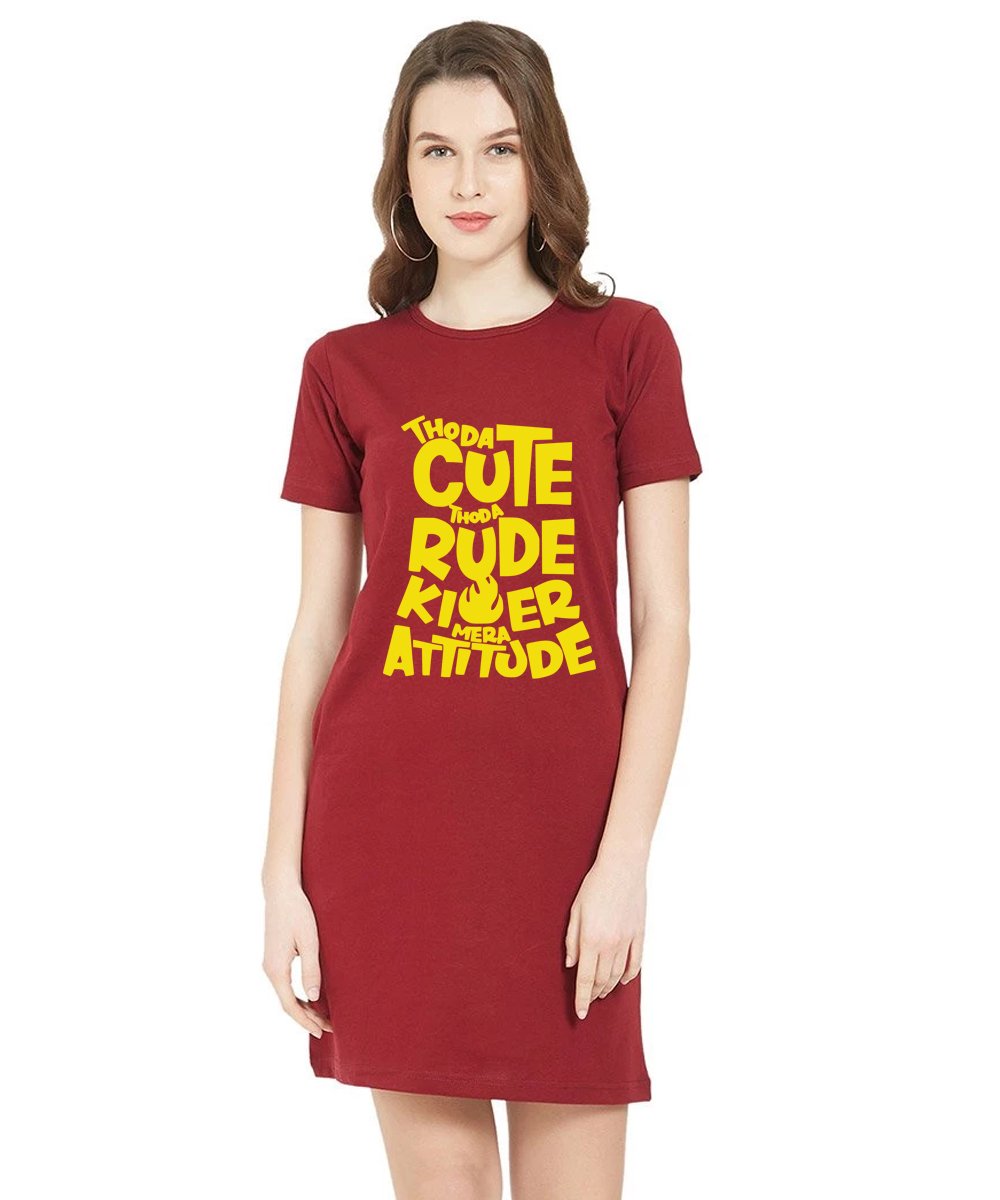 Caseria Women's Cotton Biowash Graphic Printed T-Shirt Dress with side pockets - Cute Rude Killer