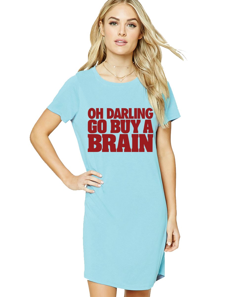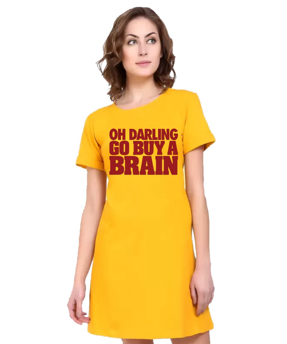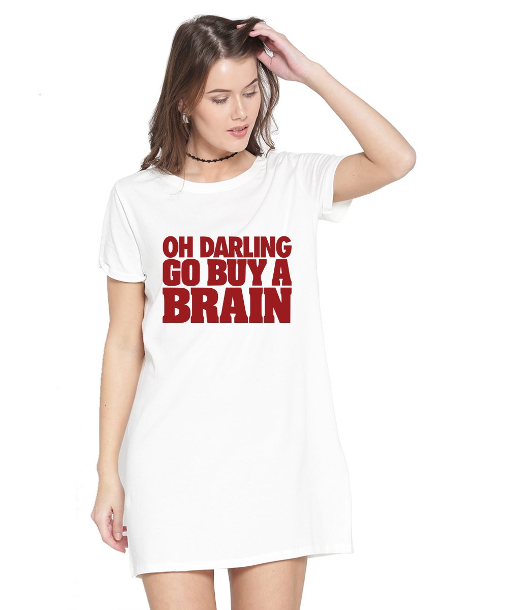 Caseria Women's Cotton Biowash Graphic Printed T-Shirt Dress with side pockets - Darling Go Buy Brain