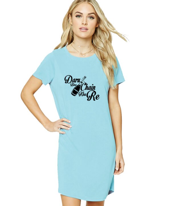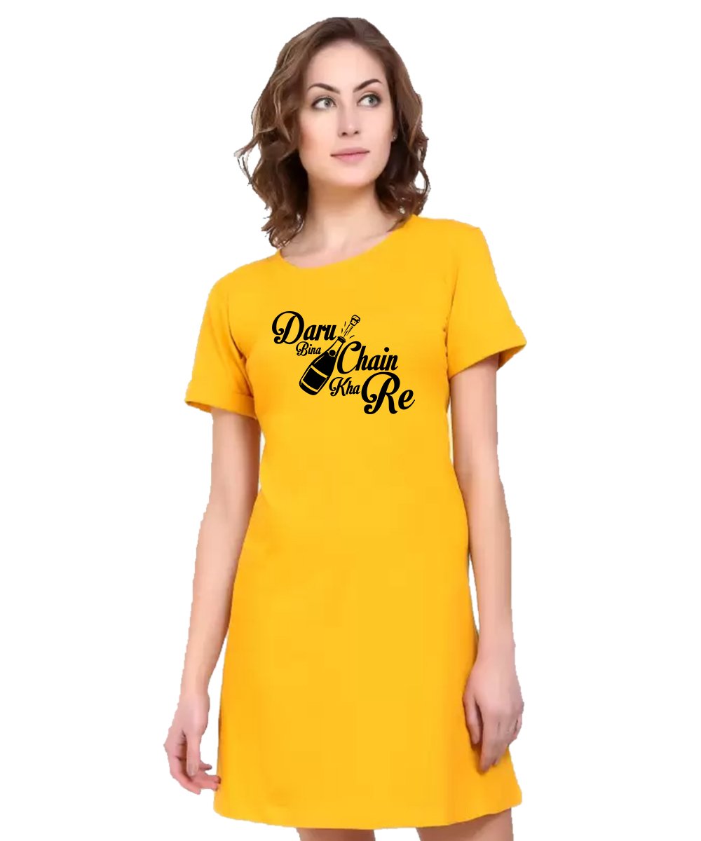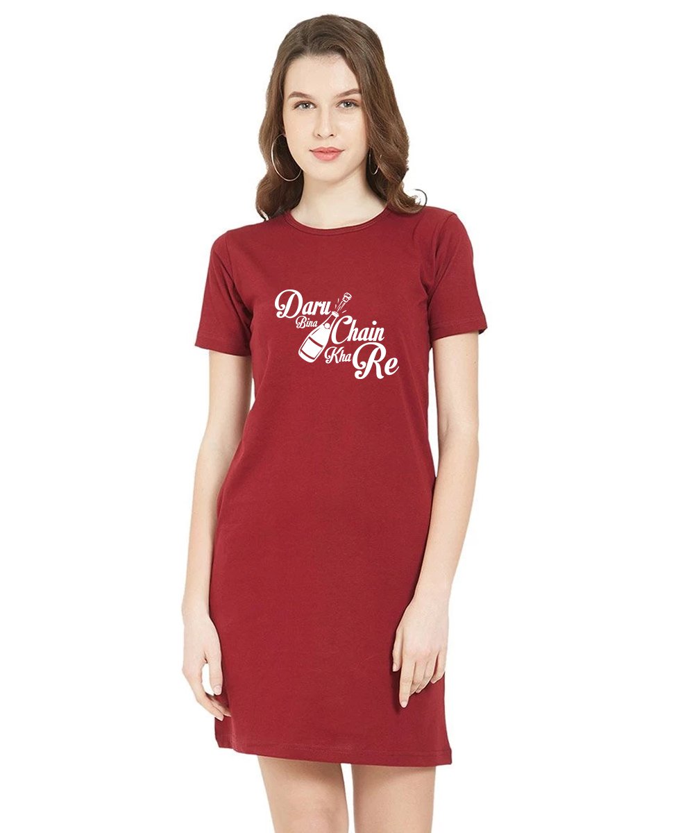 Caseria Women's Cotton Biowash Graphic Printed T-Shirt Dress with side pockets - Daru Bina Chain