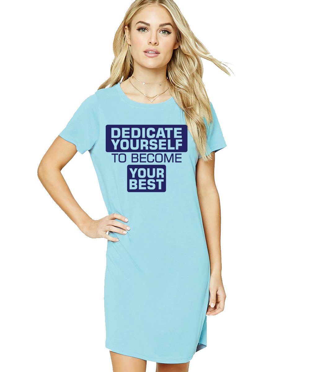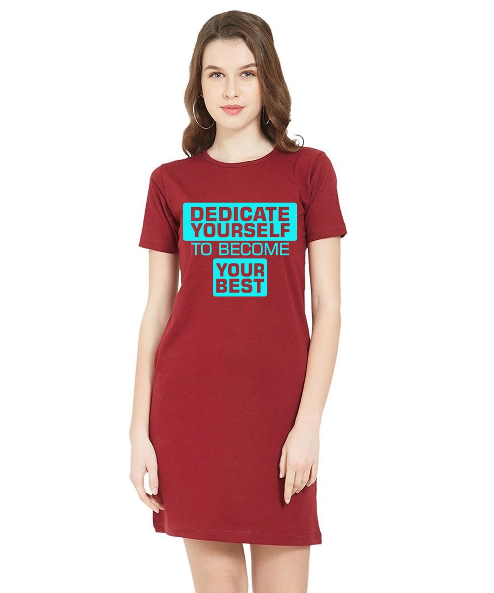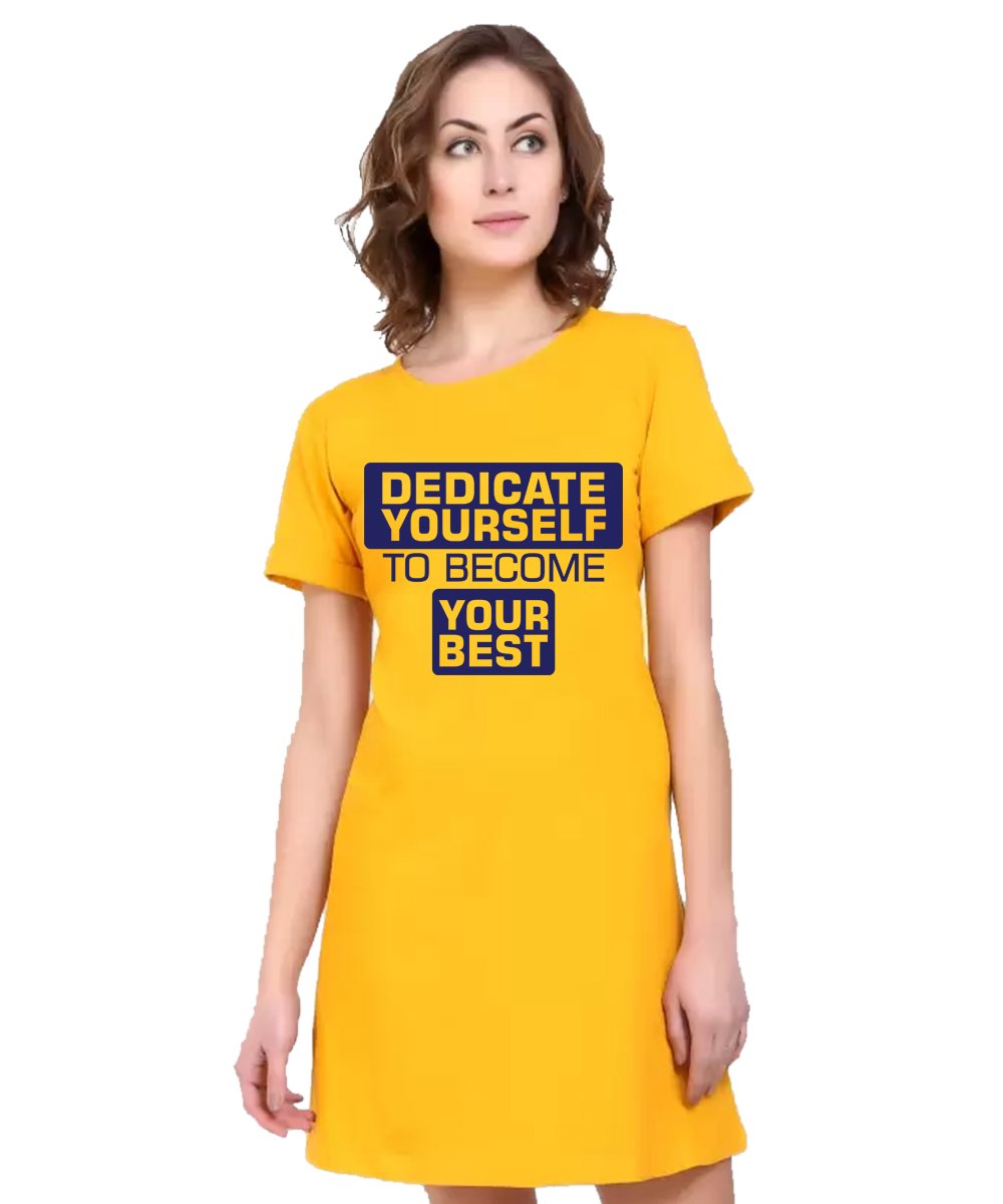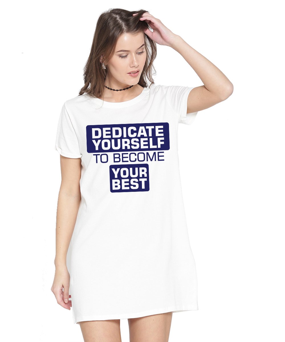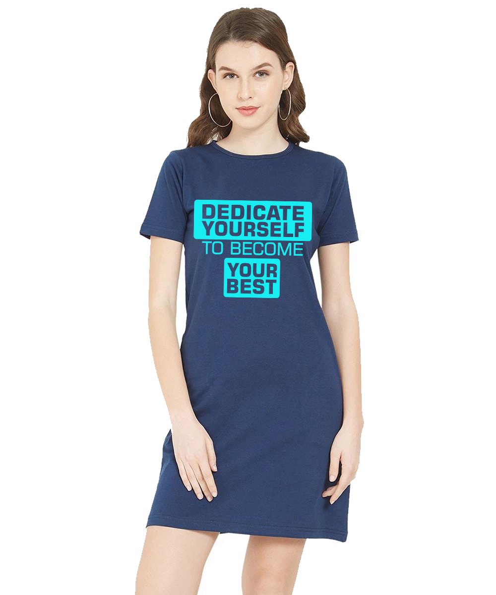 Caseria Women's Cotton Biowash Graphic Printed T-Shirt Dress with side pockets - Dedicate Yourself