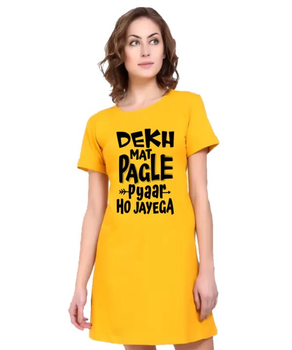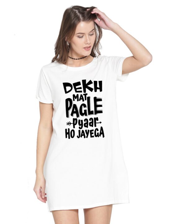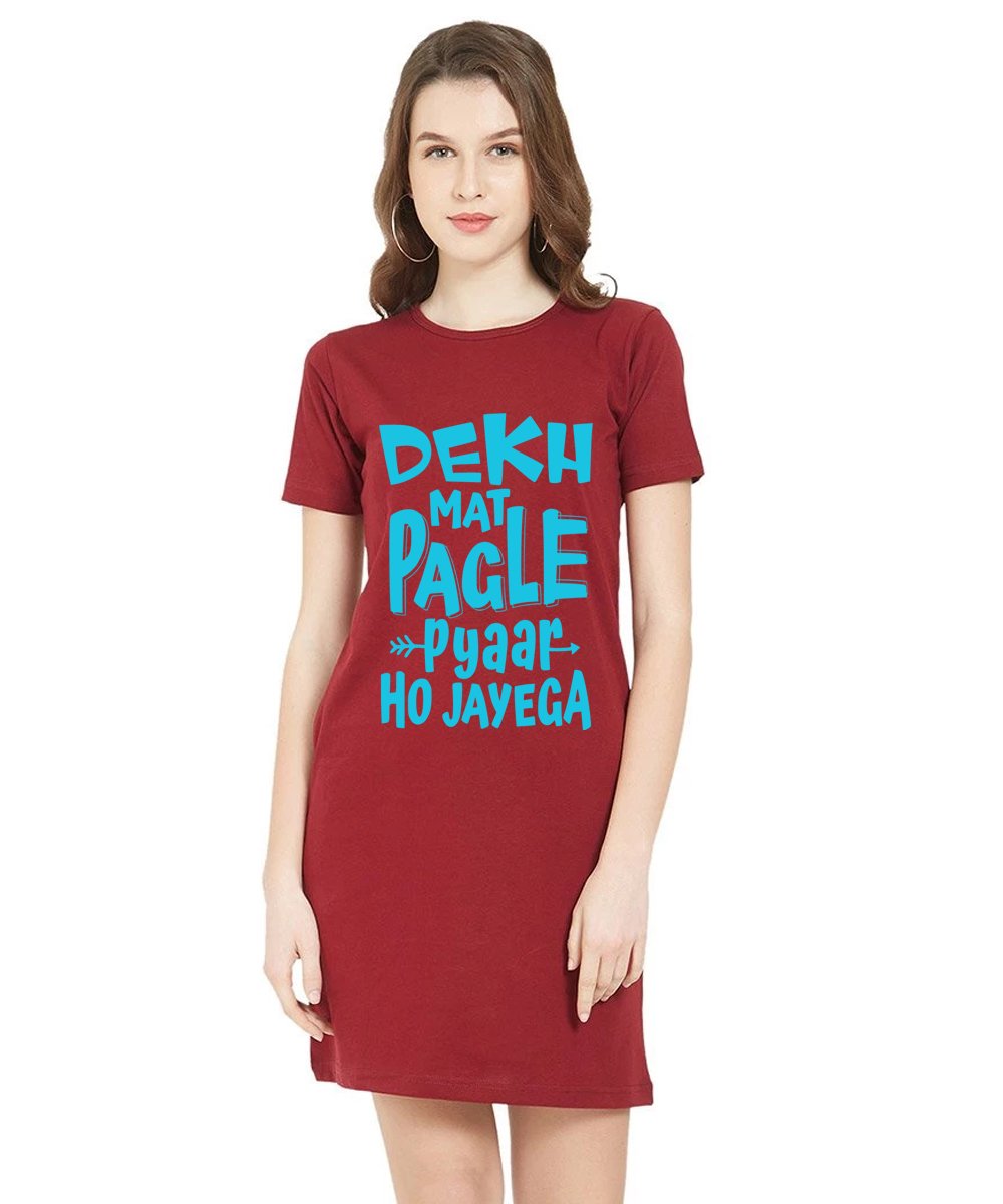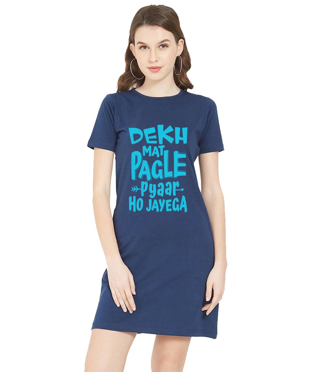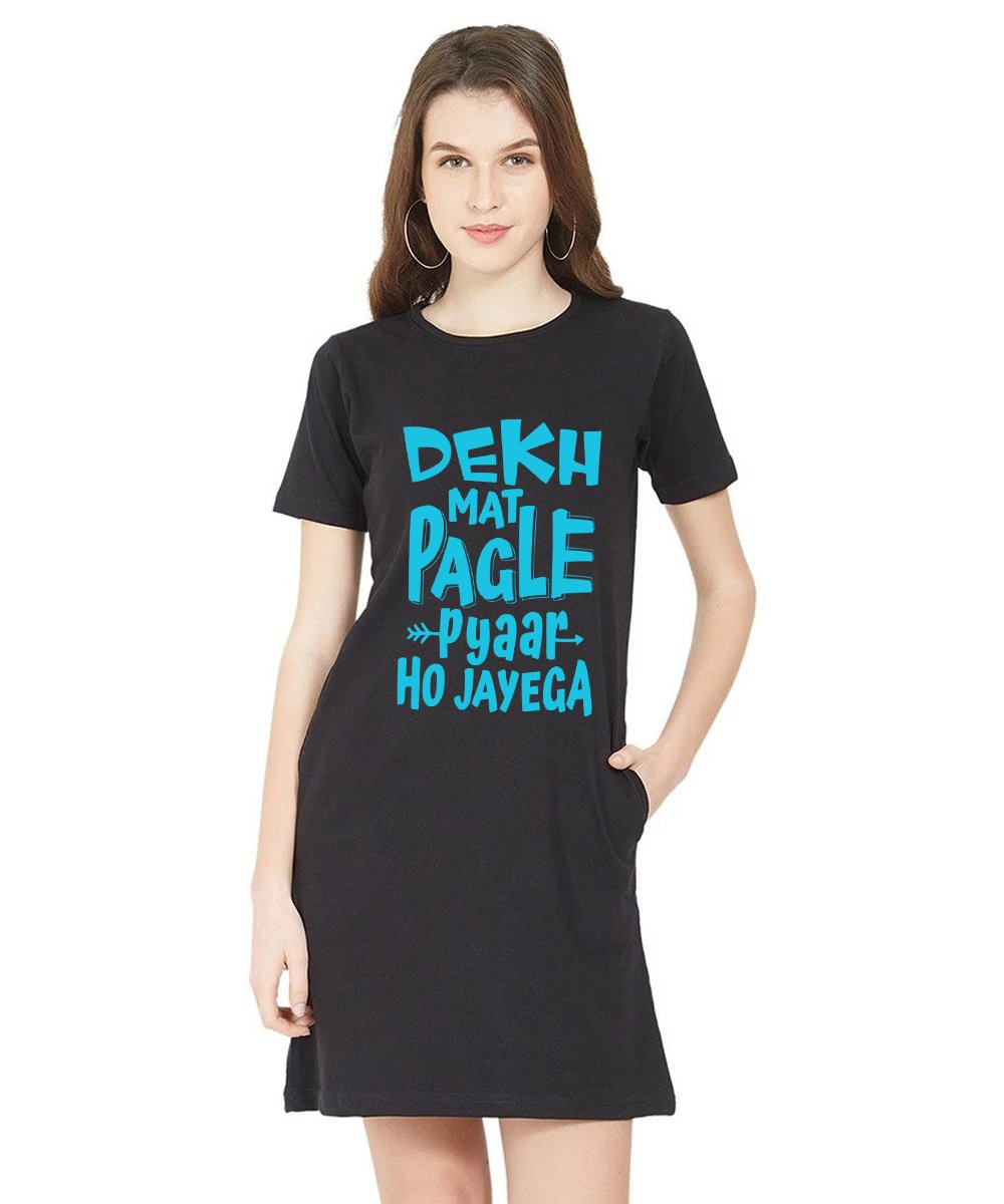 Caseria Women's Cotton Biowash Graphic Printed T-Shirt Dress with side pockets - Dekh Mat Pagale