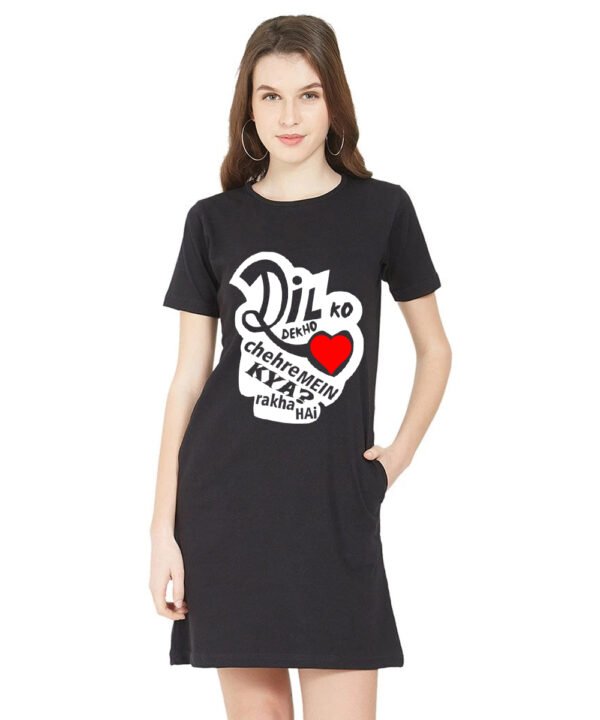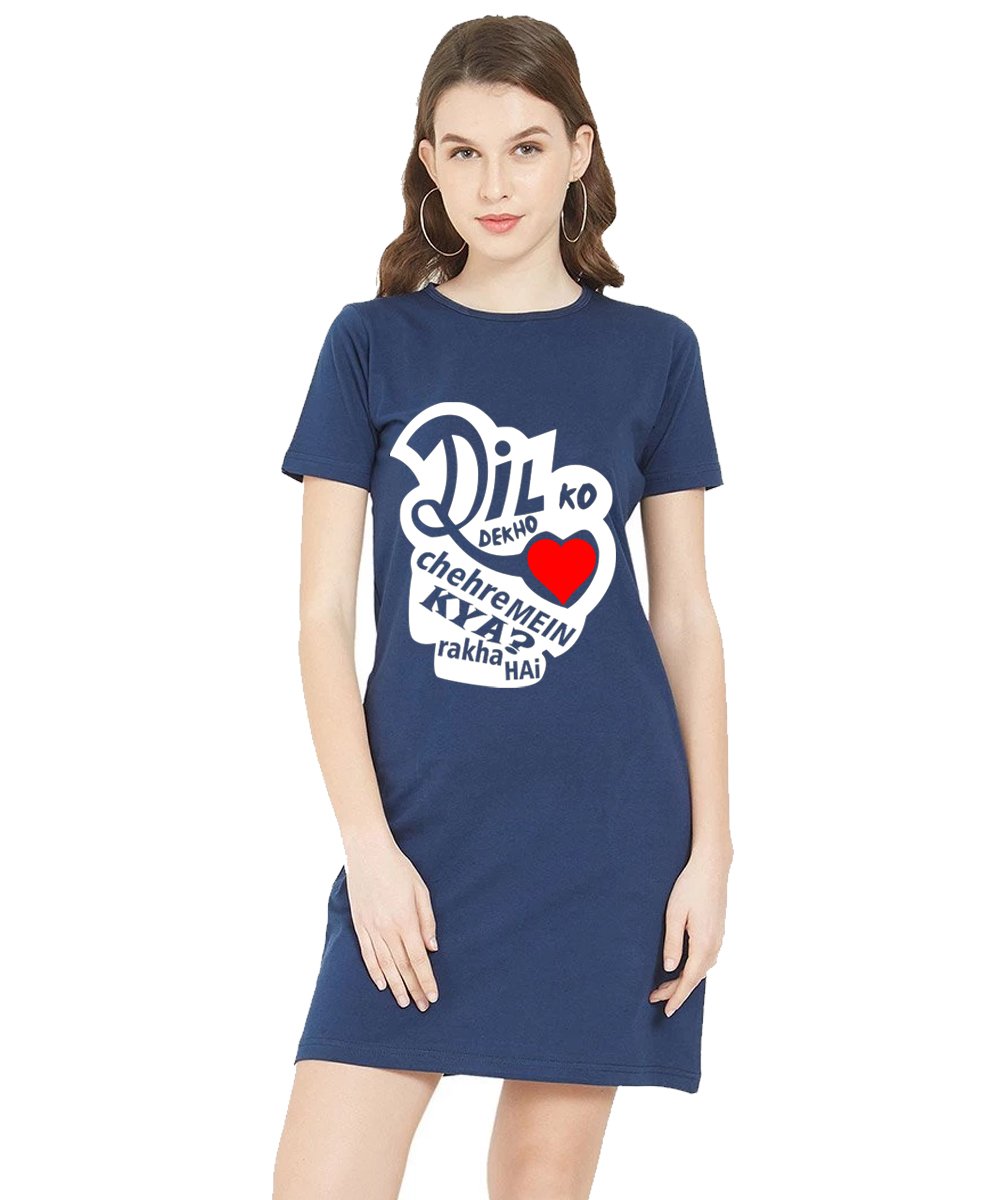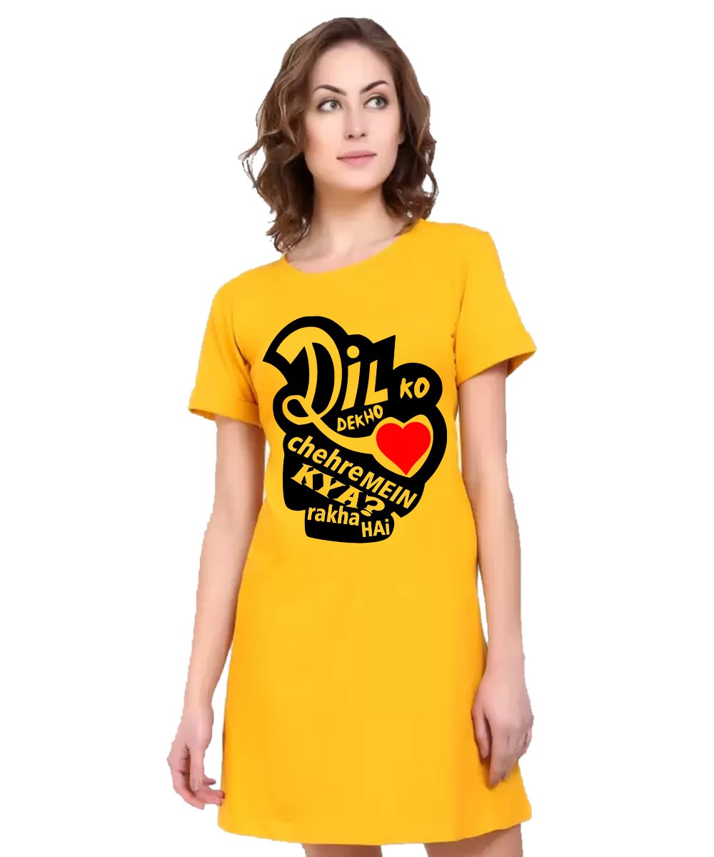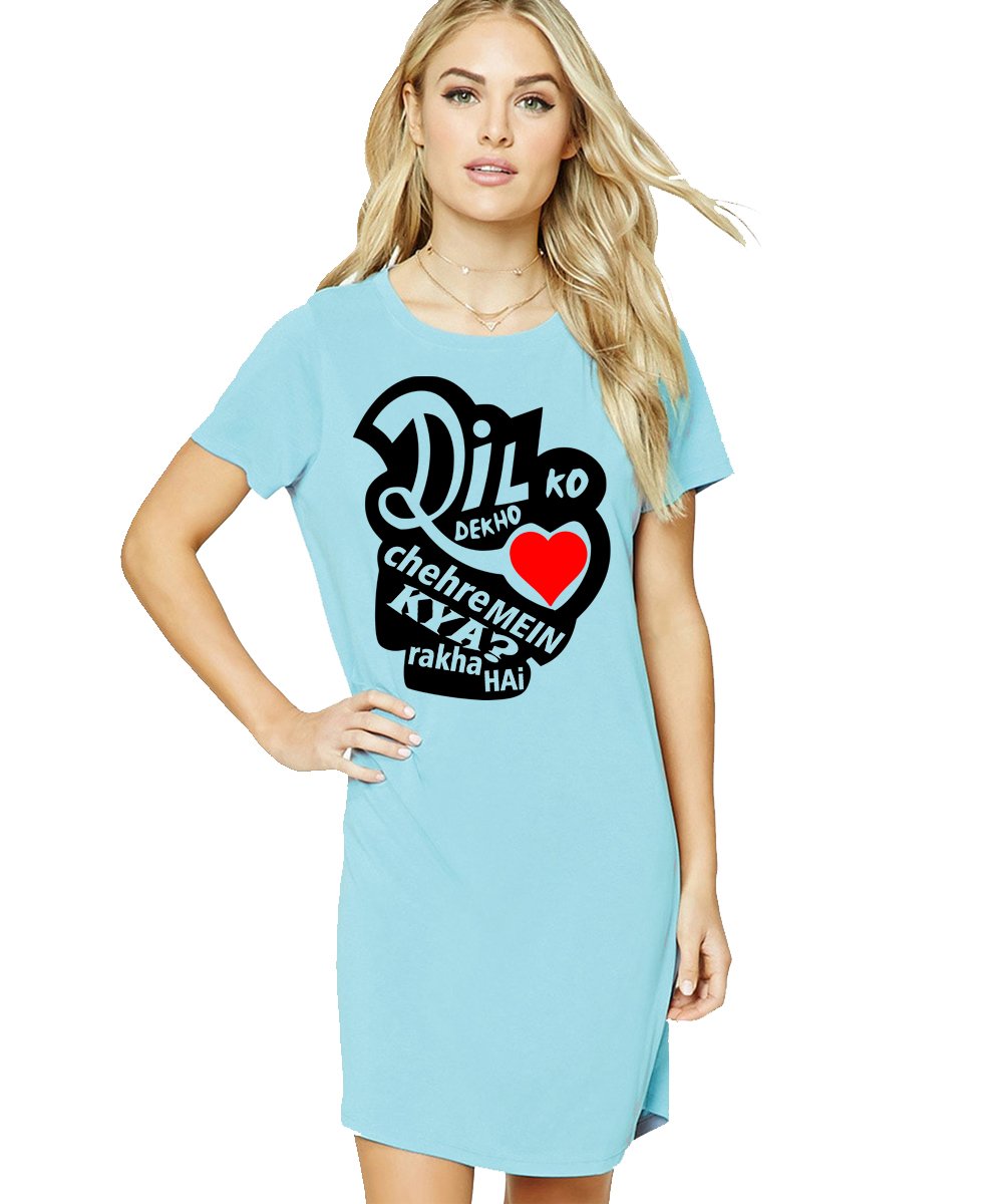 Caseria Women's Cotton Biowash Graphic Printed T-Shirt Dress with side pockets - Dil Ko Dekho