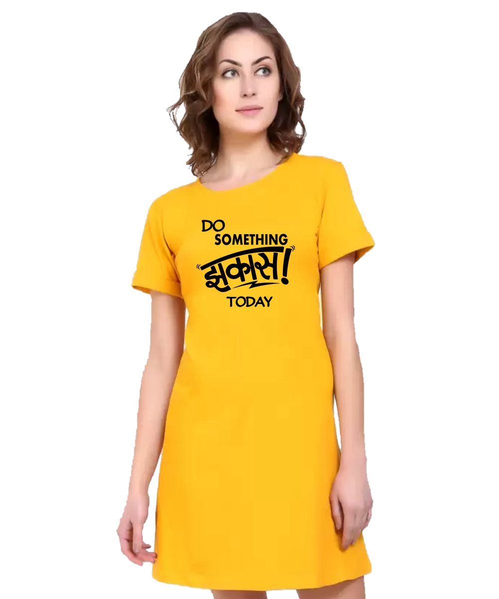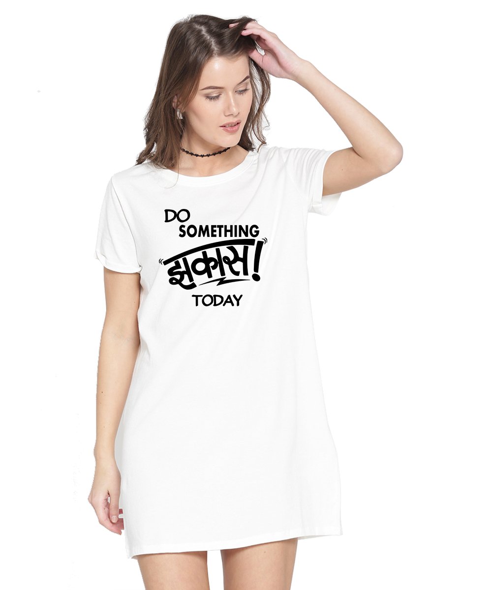 Caseria Women's Cotton Biowash Graphic Printed T-Shirt Dress with side pockets - Do Something