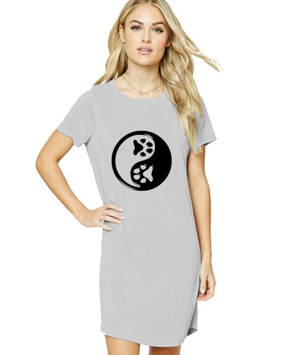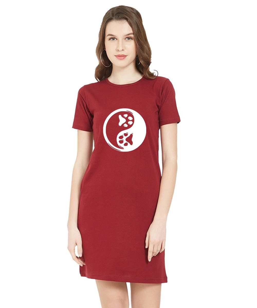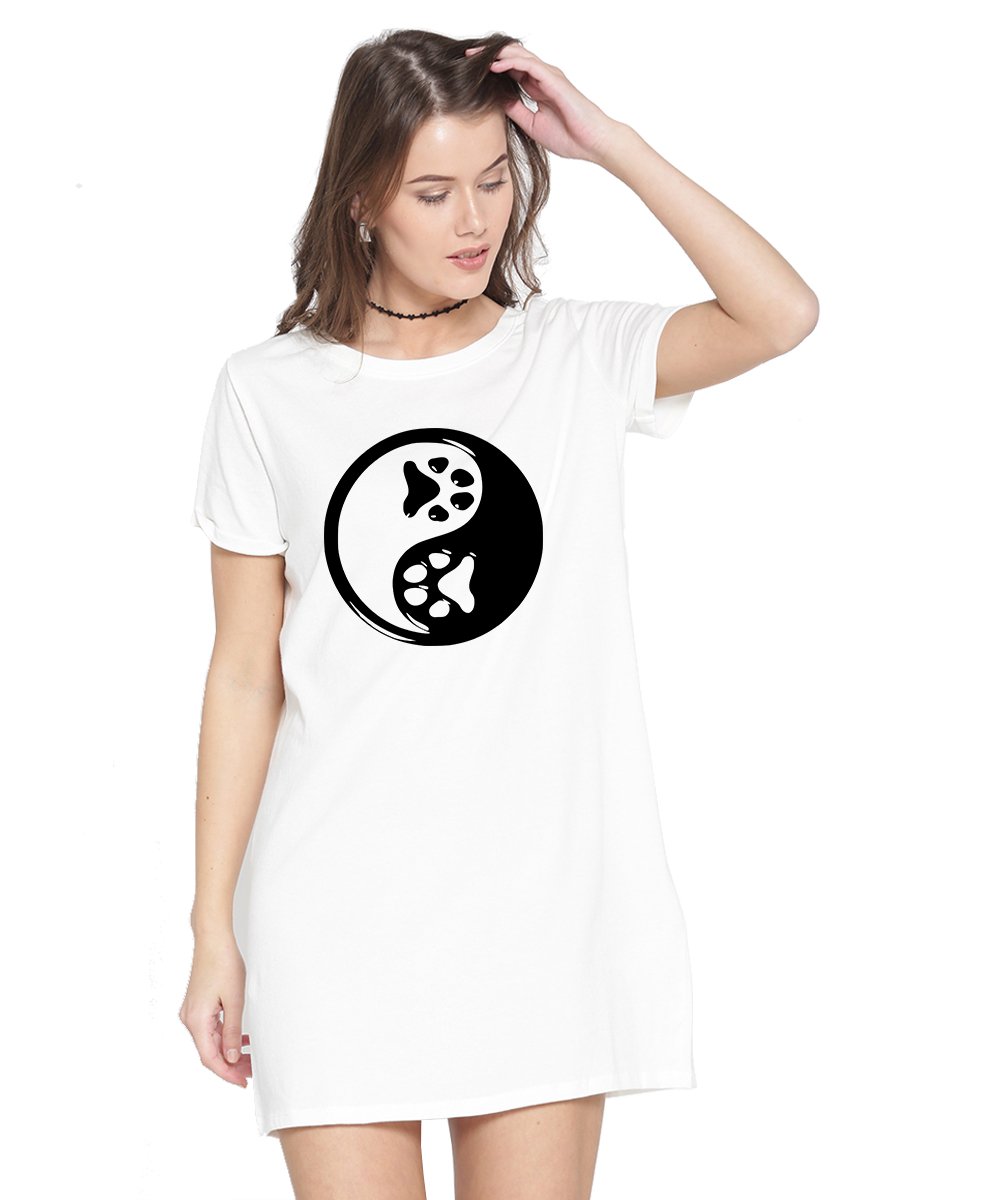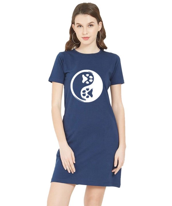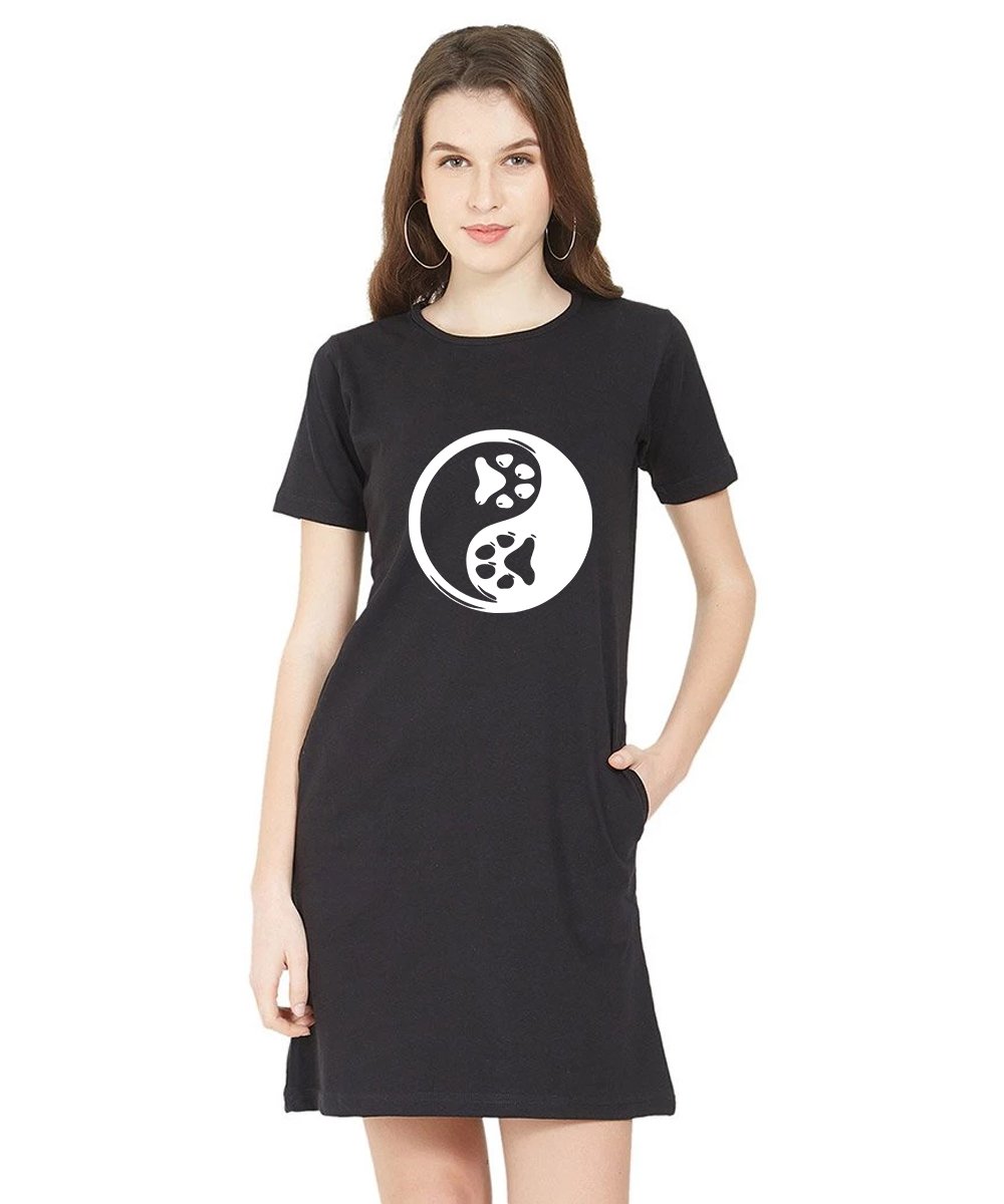 Caseria Women's Cotton Biowash Graphic Printed T-Shirt Dress with side pockets - Dog Foot