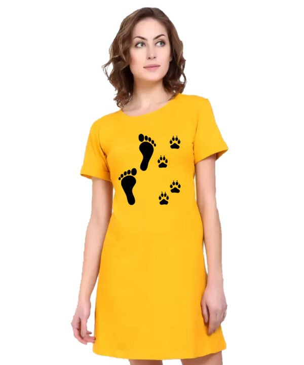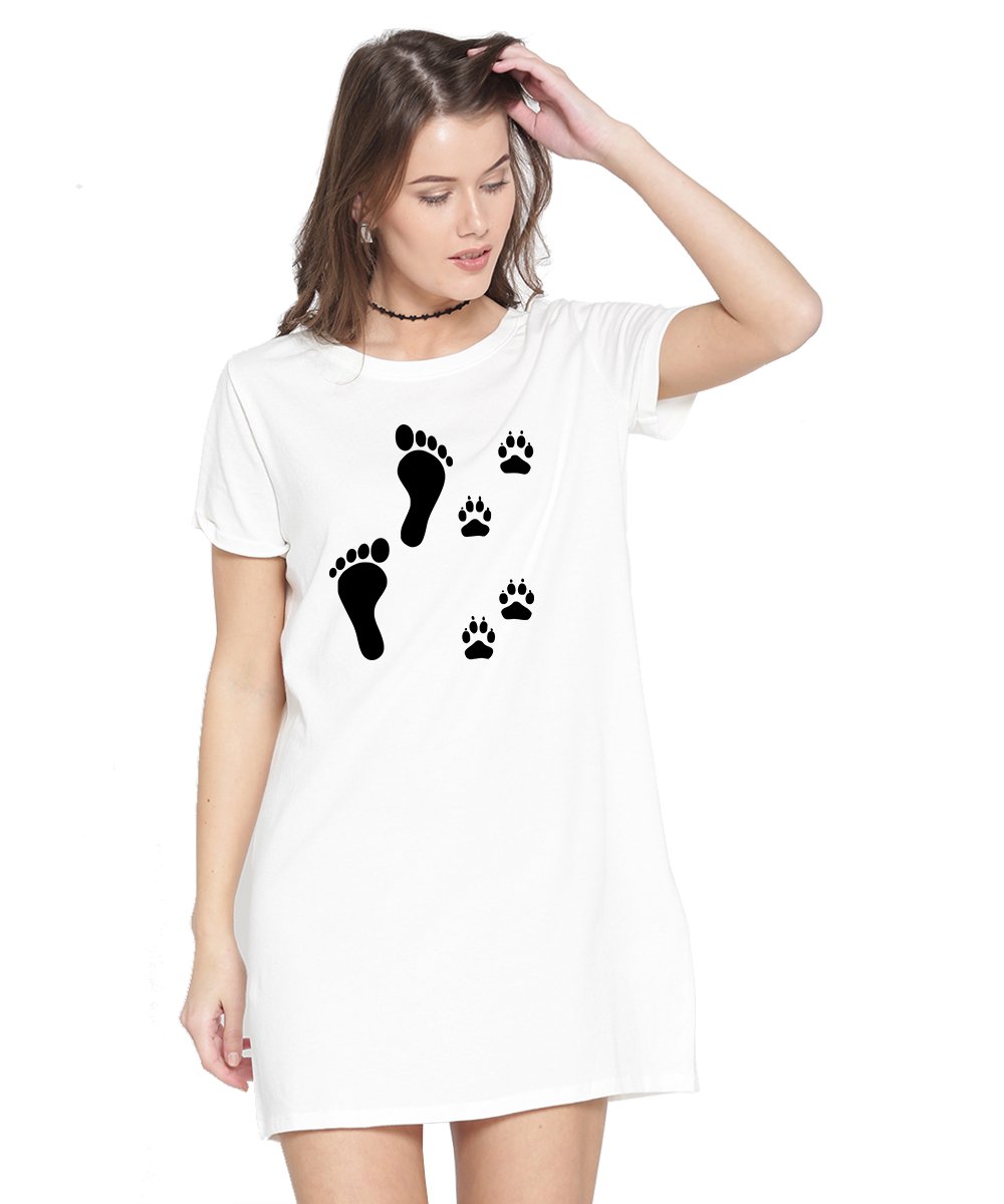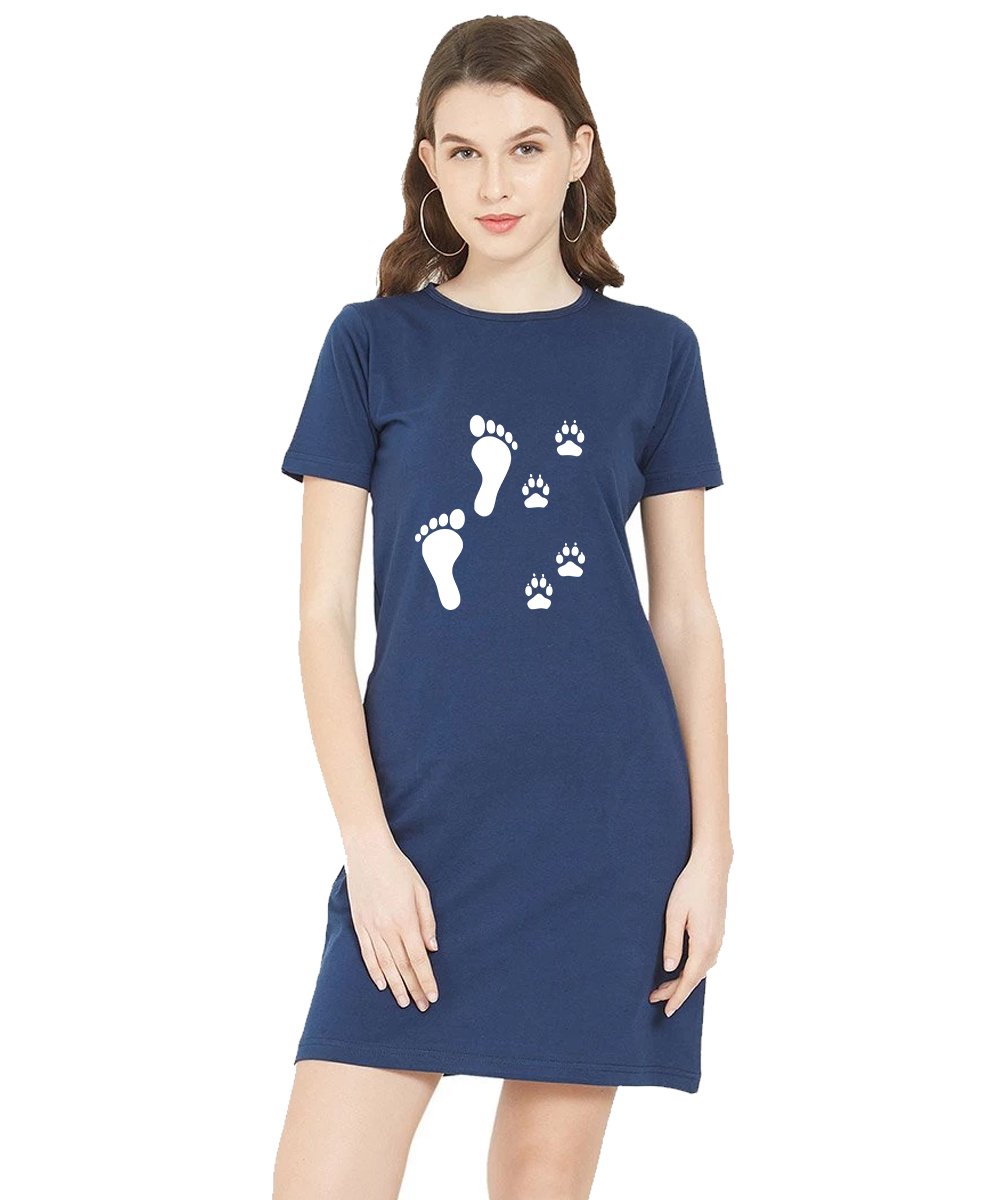 Caseria Women's Cotton Biowash Graphic Printed T-Shirt Dress with side pockets - Foot Of Life