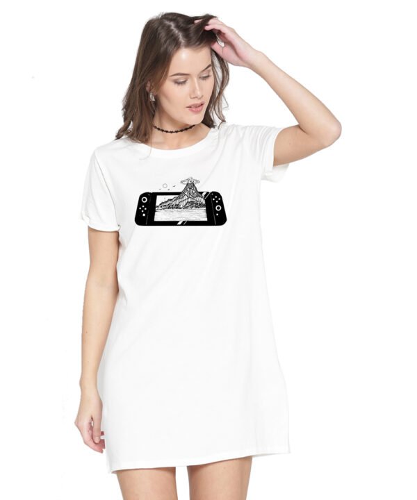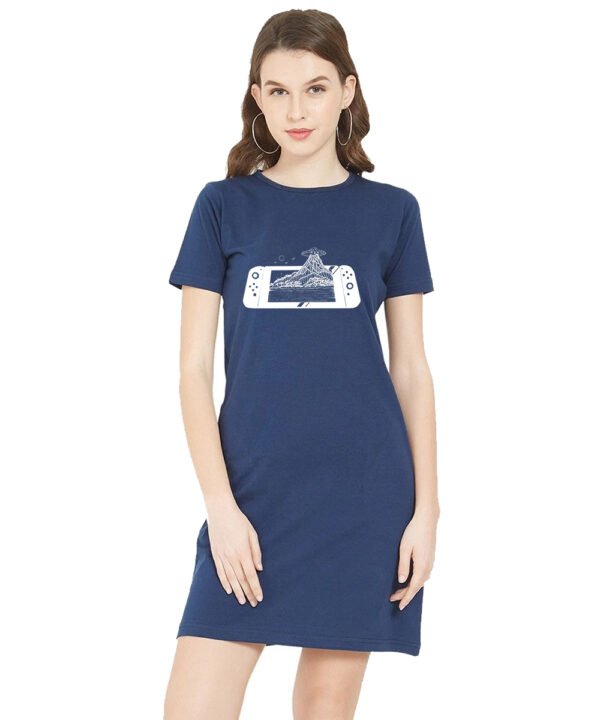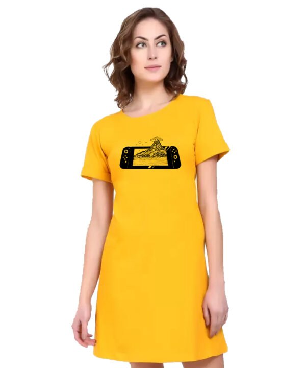 Caseria Women's Cotton Biowash Graphic Printed T-Shirt Dress with side pockets - Game Bomb