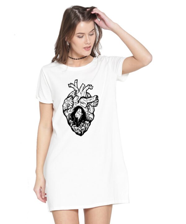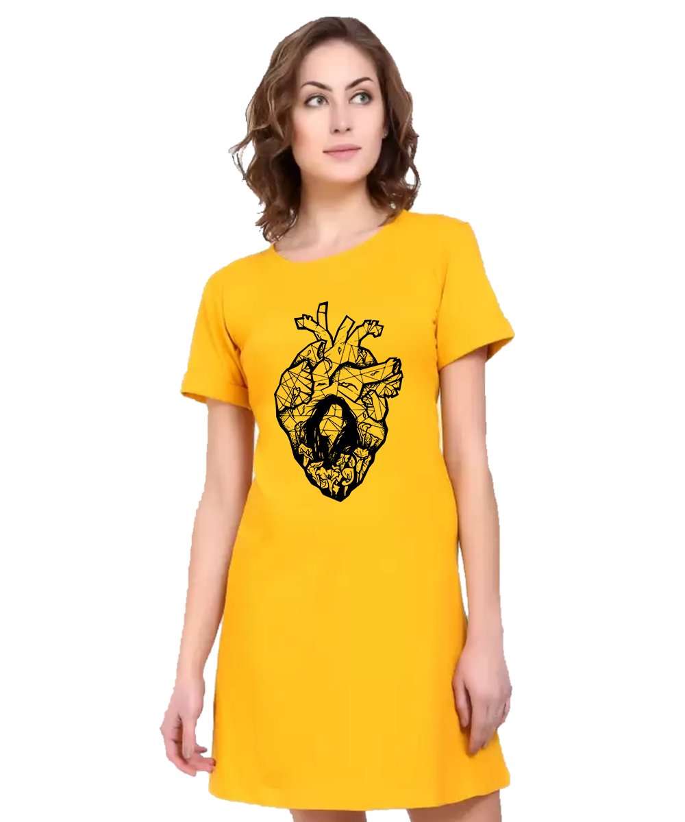 Caseria Women's Cotton Biowash Graphic Printed T-Shirt Dress with side pockets - Heart Cut