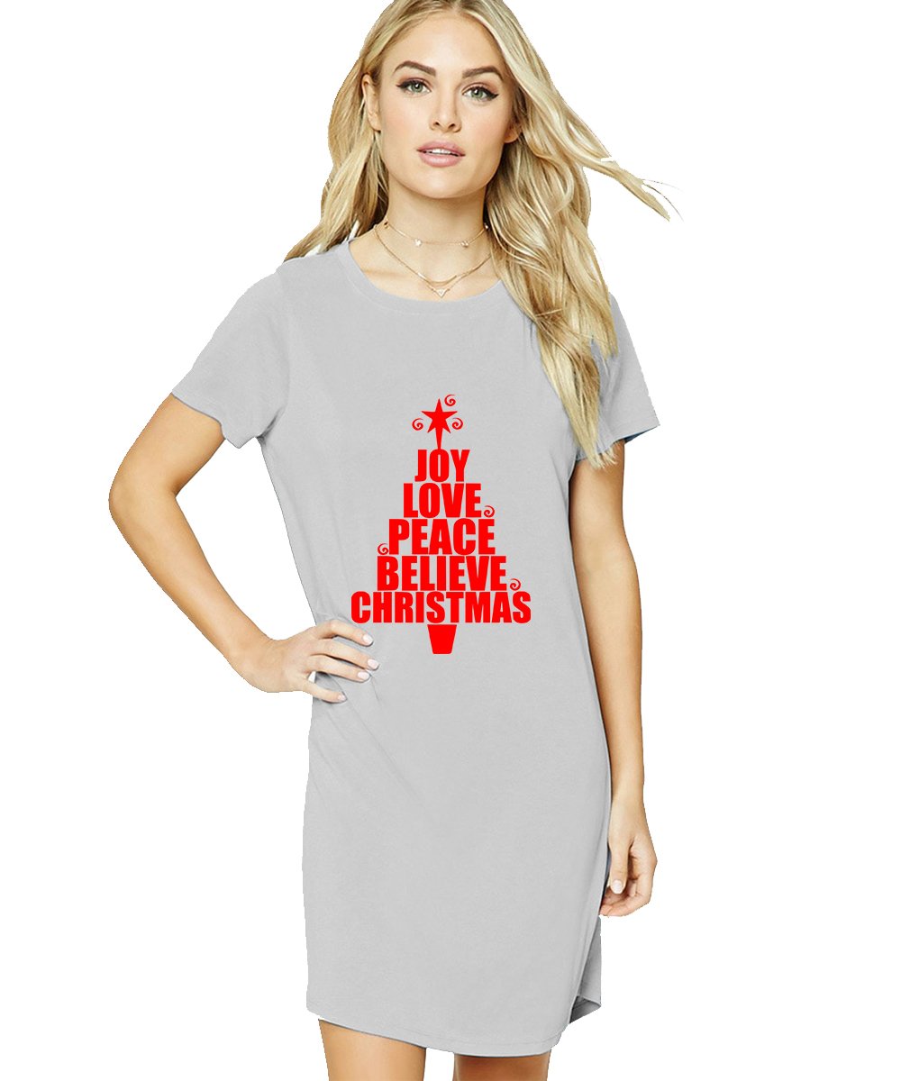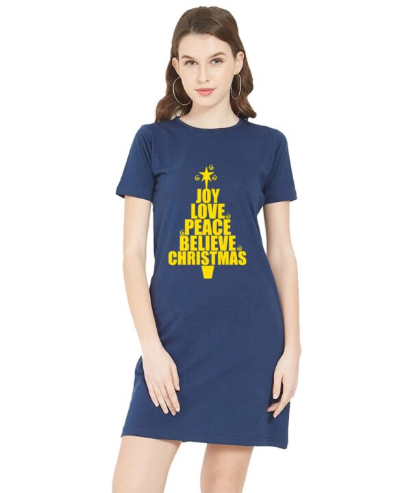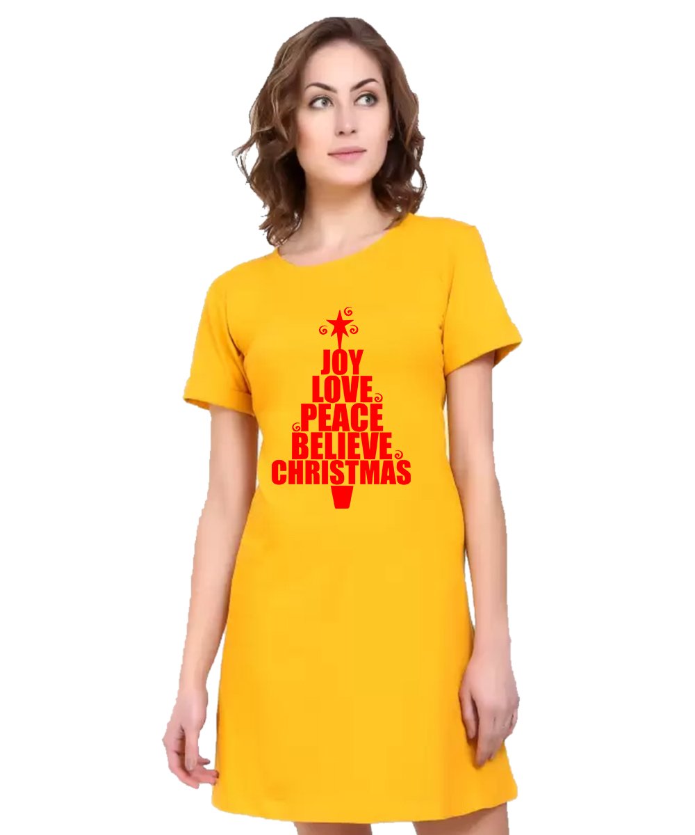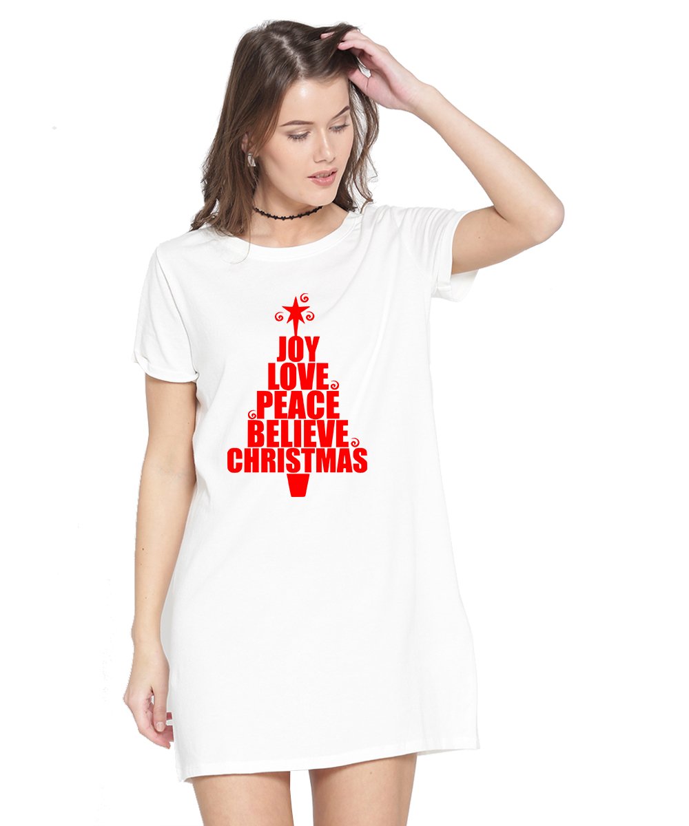Caseria Women's Cotton Biowash Graphic Printed T-Shirt Dress with side pockets - Joy Love Peace