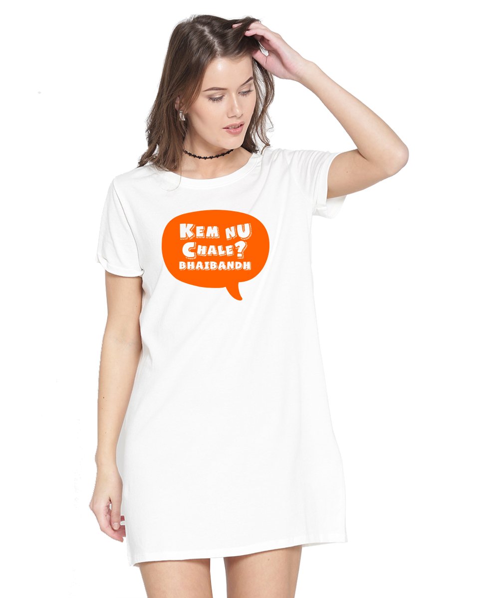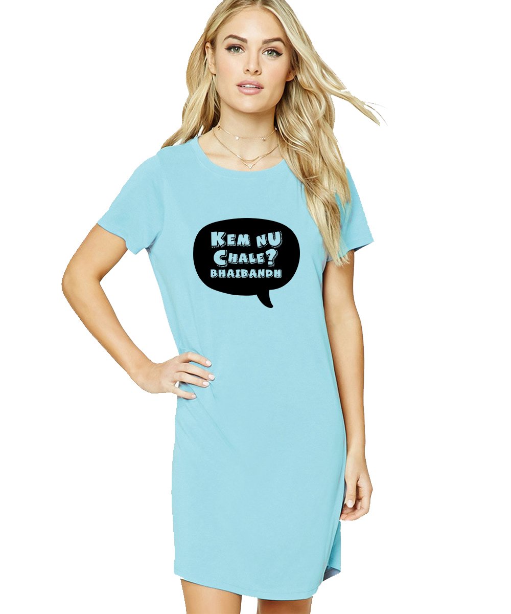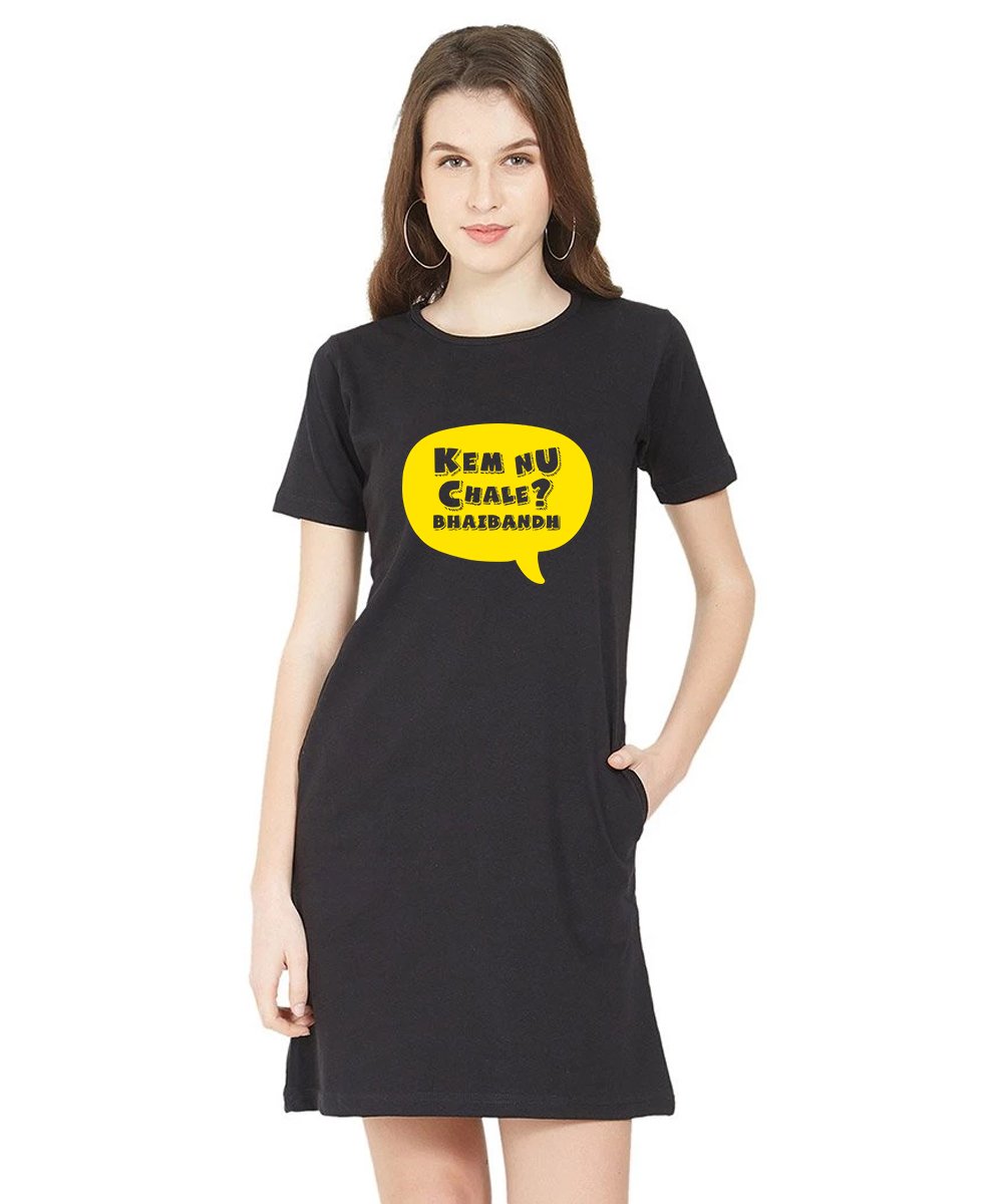 Caseria Women's Cotton Biowash Graphic Printed T-Shirt Dress with side pockets - Kem Nu Chale