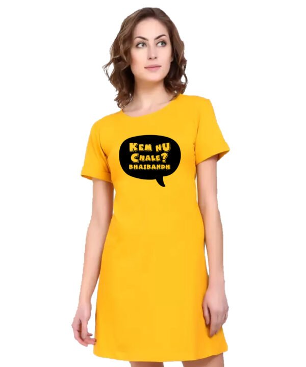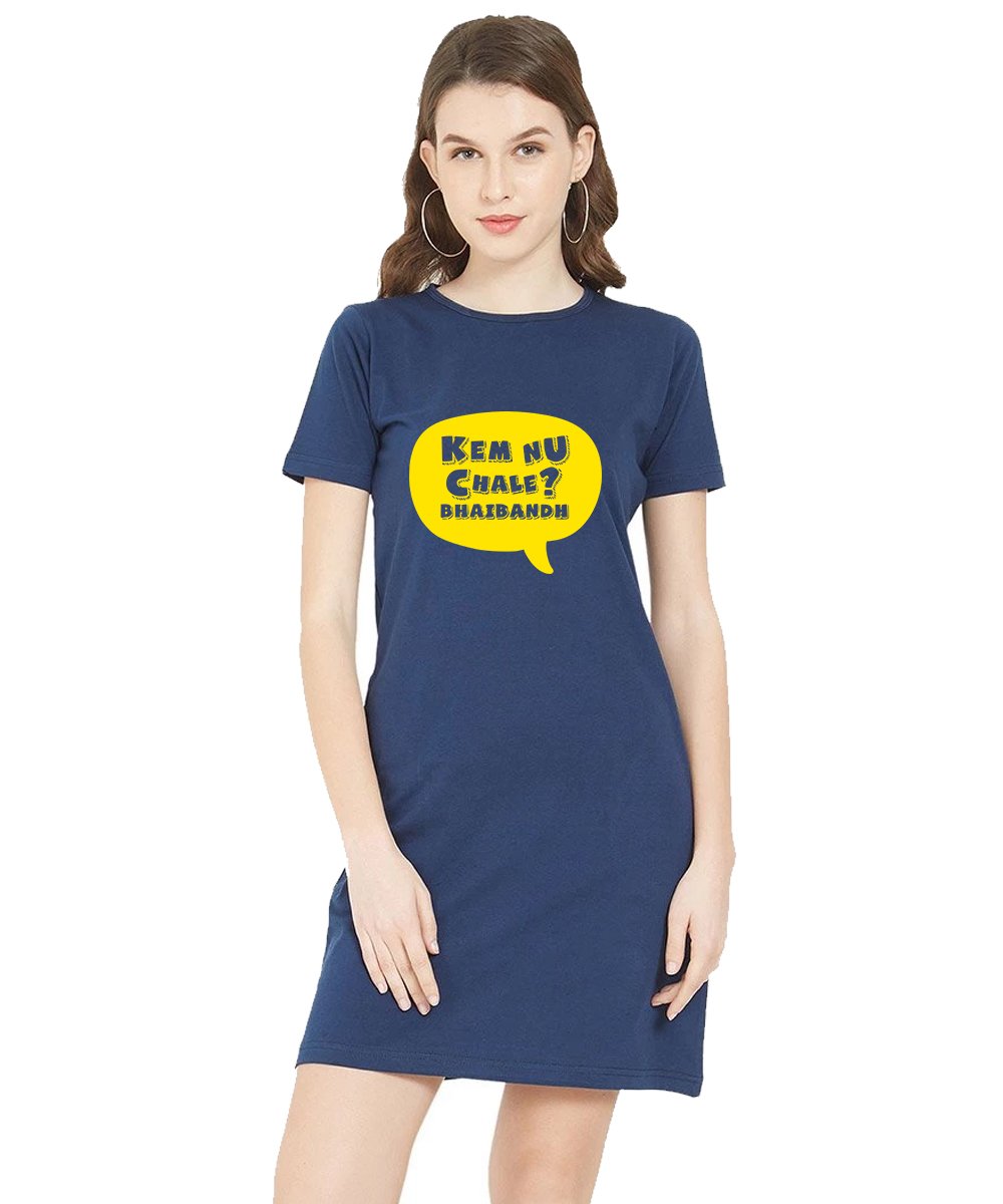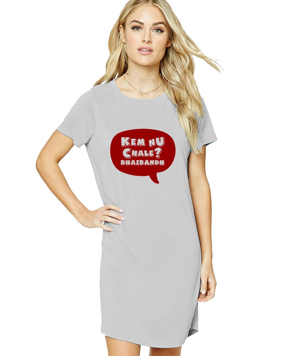 Caseria Women's Cotton Biowash Graphic Printed T-Shirt Dress with side pockets - Kem Nu Chale