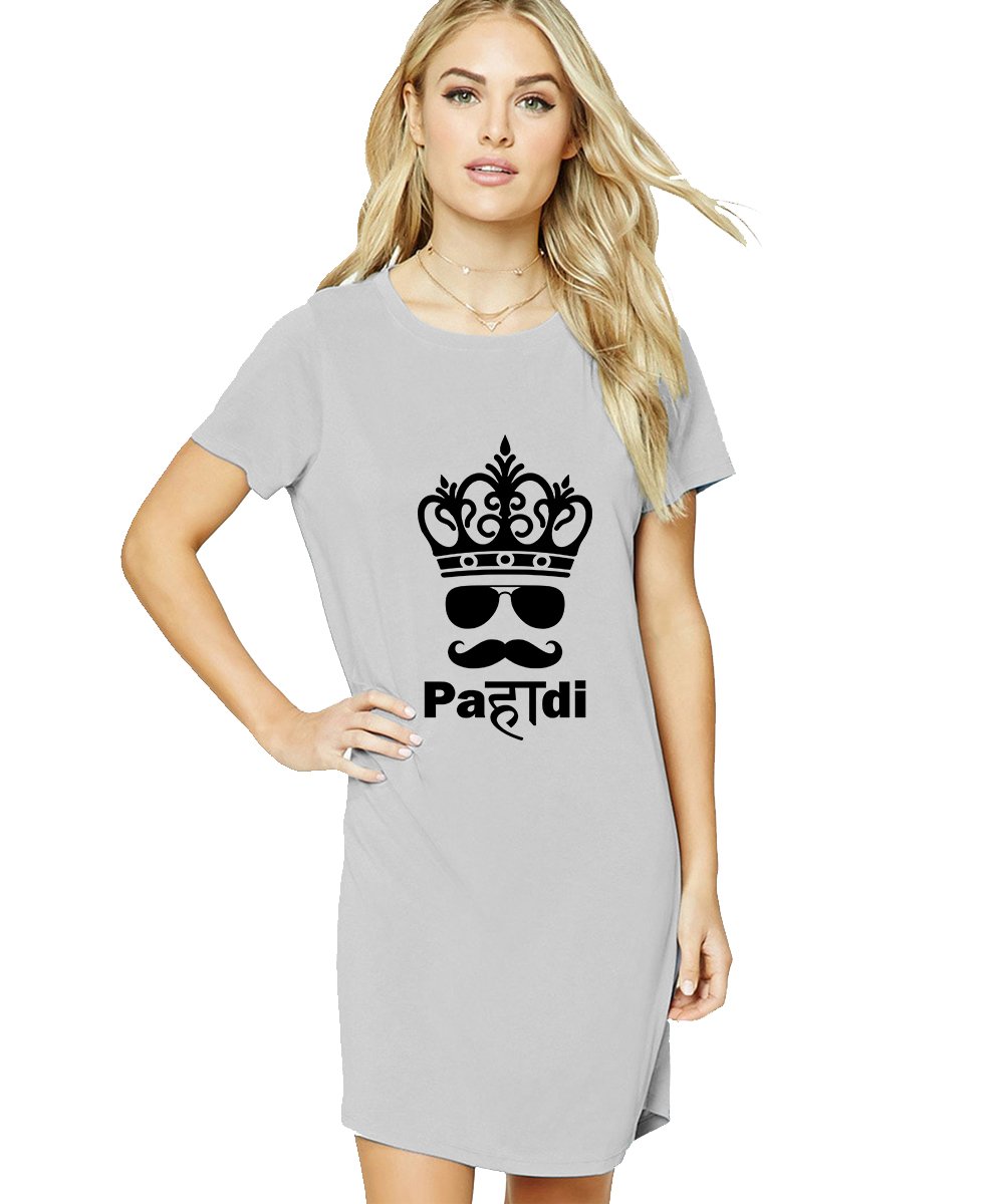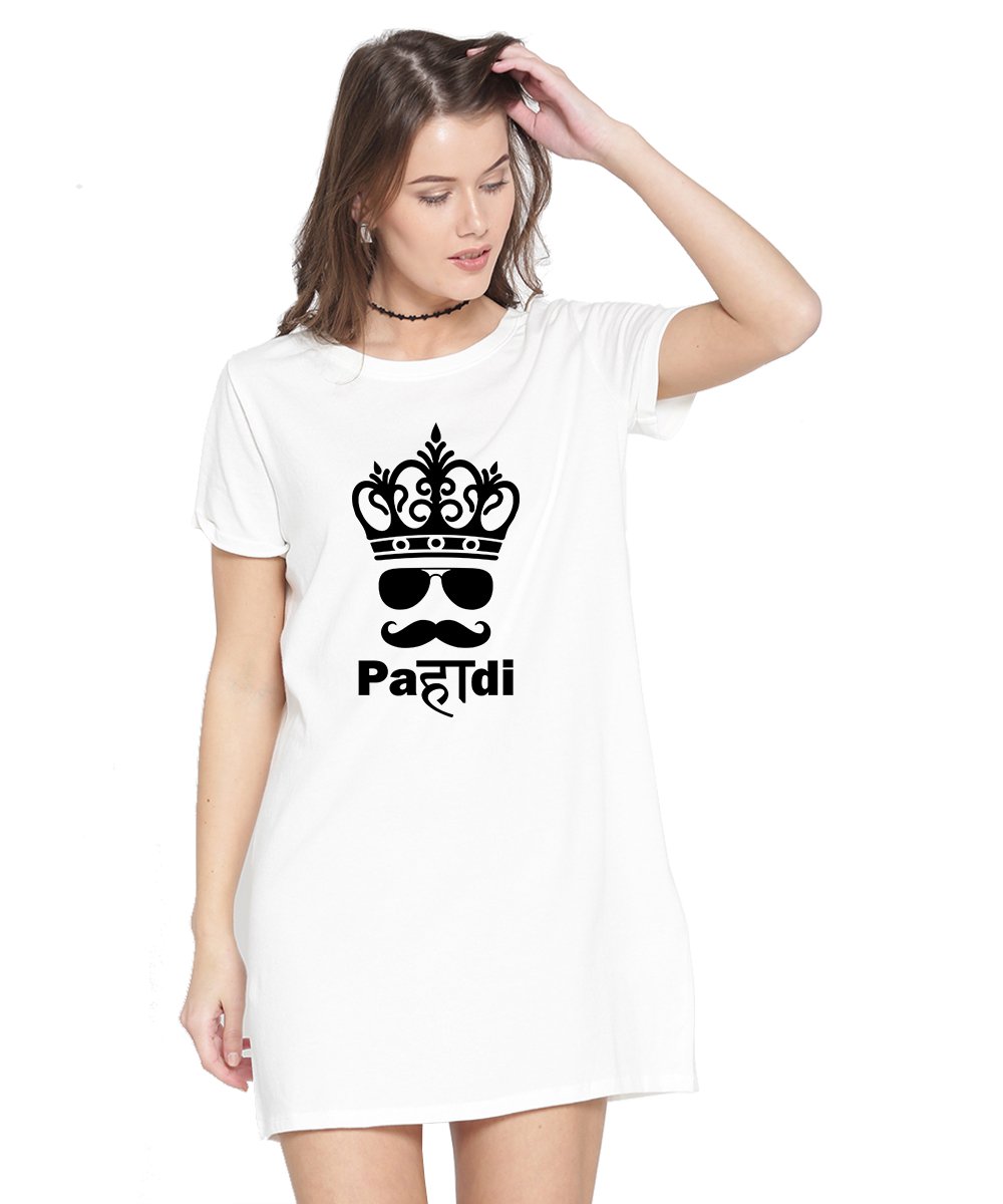Caseria Women's Cotton Biowash Graphic Printed T-Shirt Dress with side pockets - King Pahadi