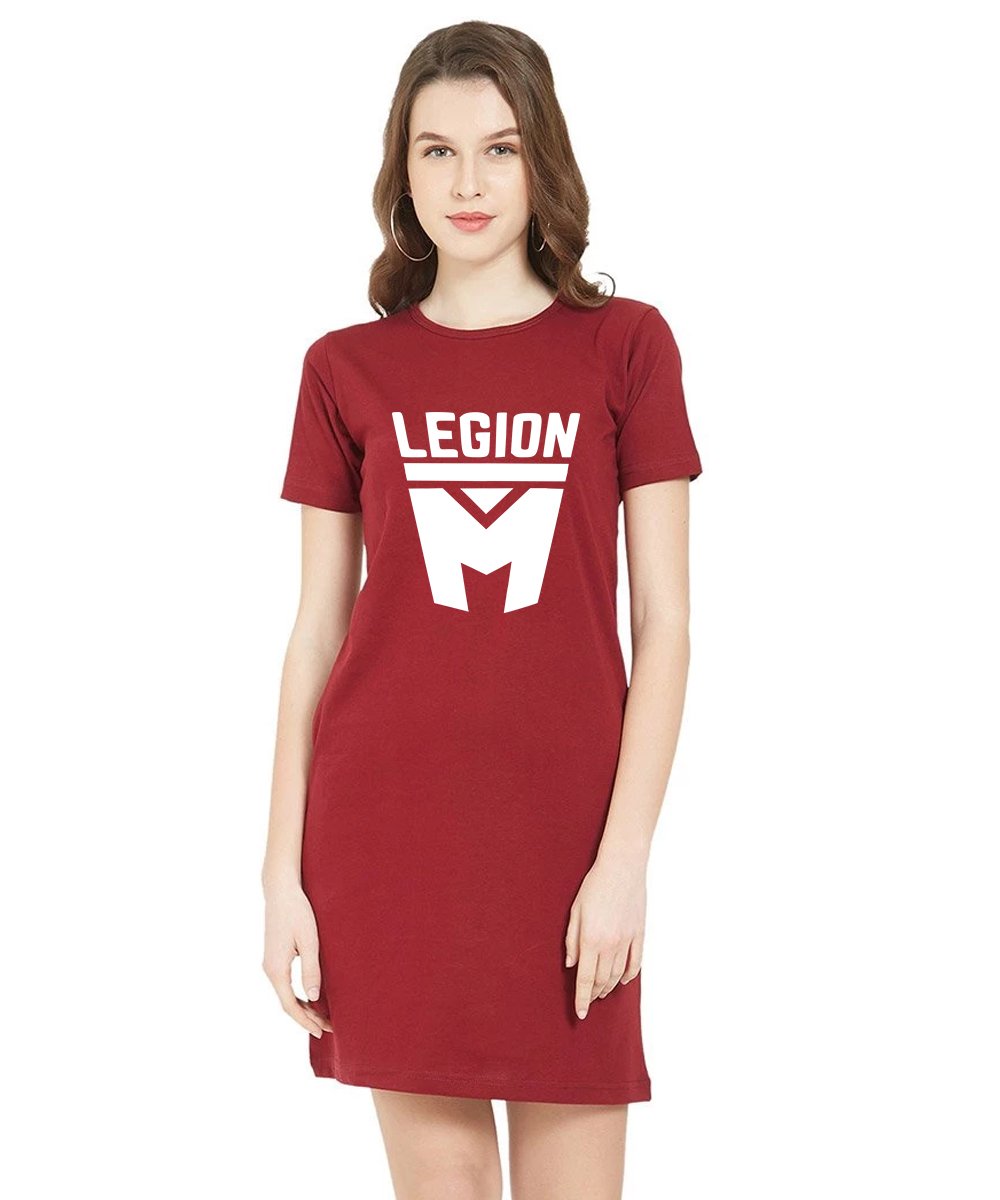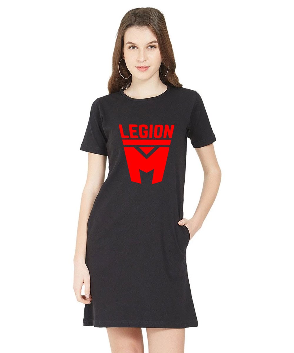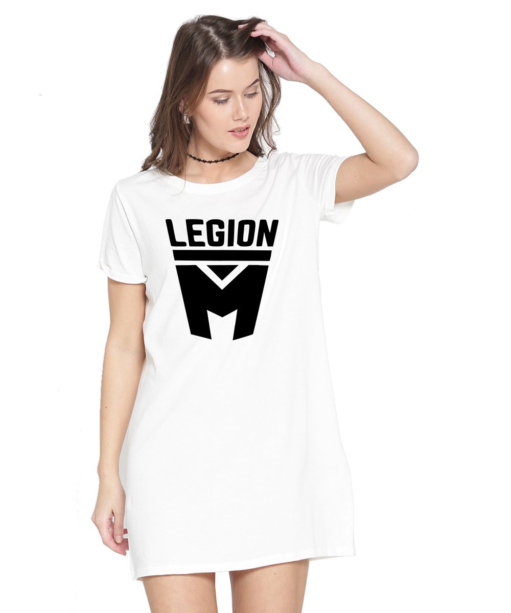 Caseria Women's Cotton Biowash Graphic Printed T-Shirt Dress with side pockets - Legion M