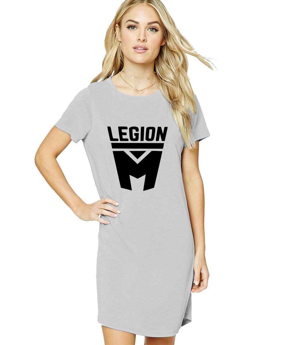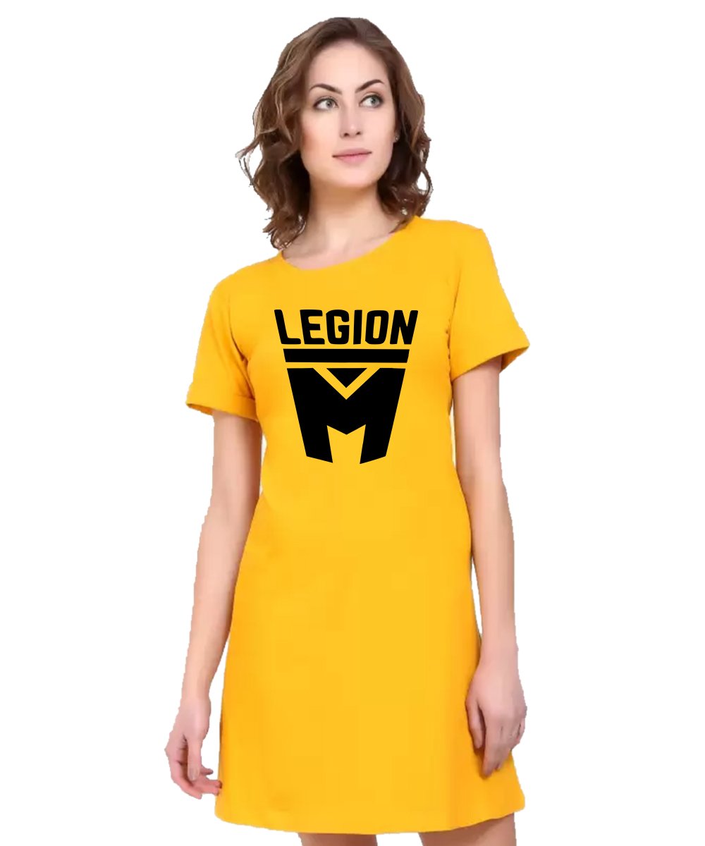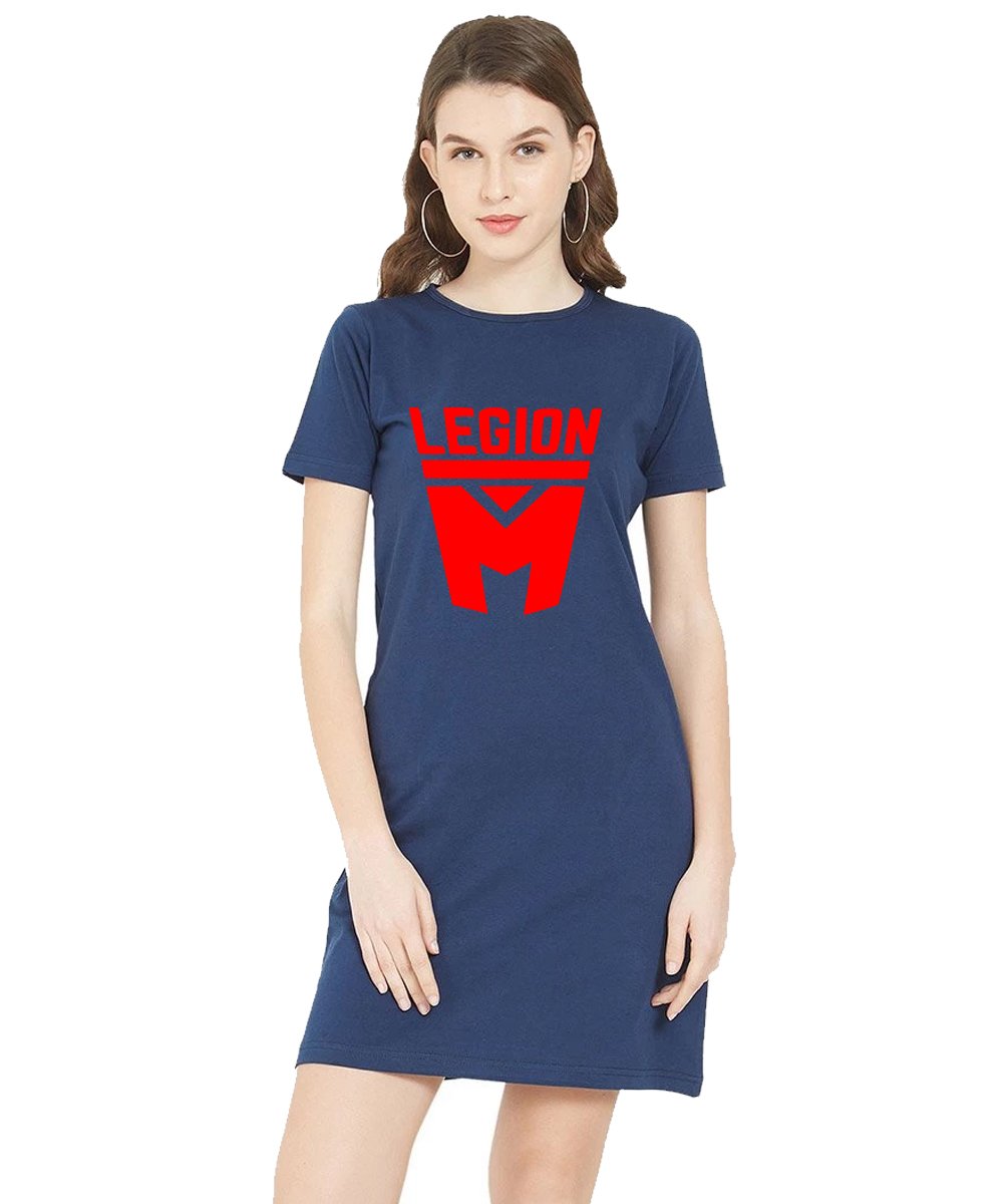 Caseria Women's Cotton Biowash Graphic Printed T-Shirt Dress with side pockets - Legion M