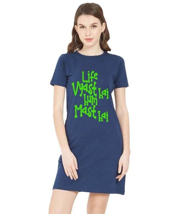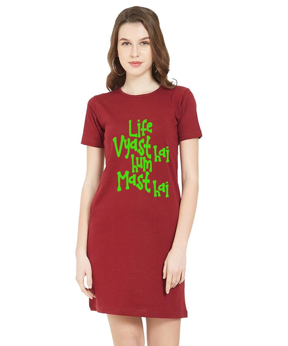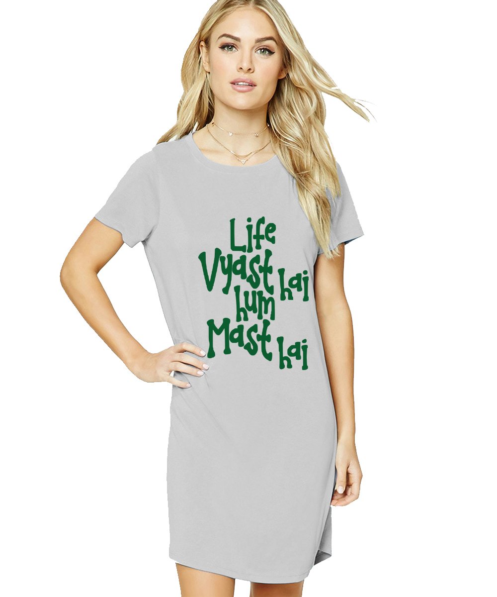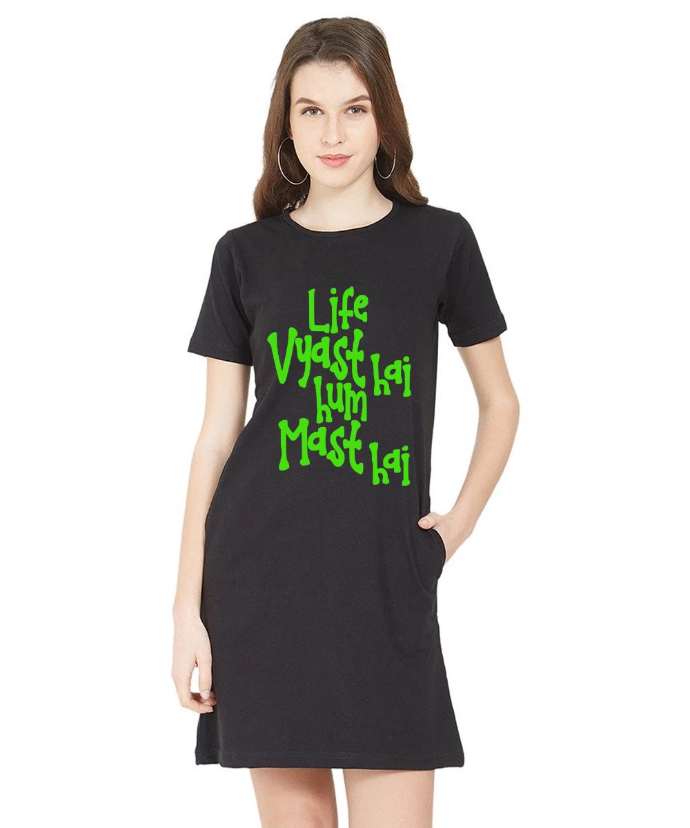 Caseria Women's Cotton Biowash Graphic Printed T-Shirt Dress with side pockets - Life Vyast Hum Mast