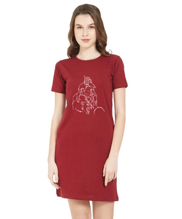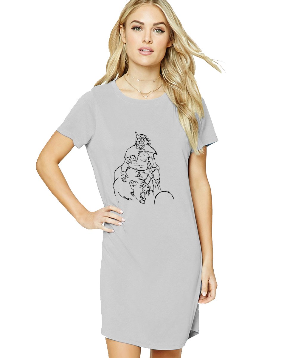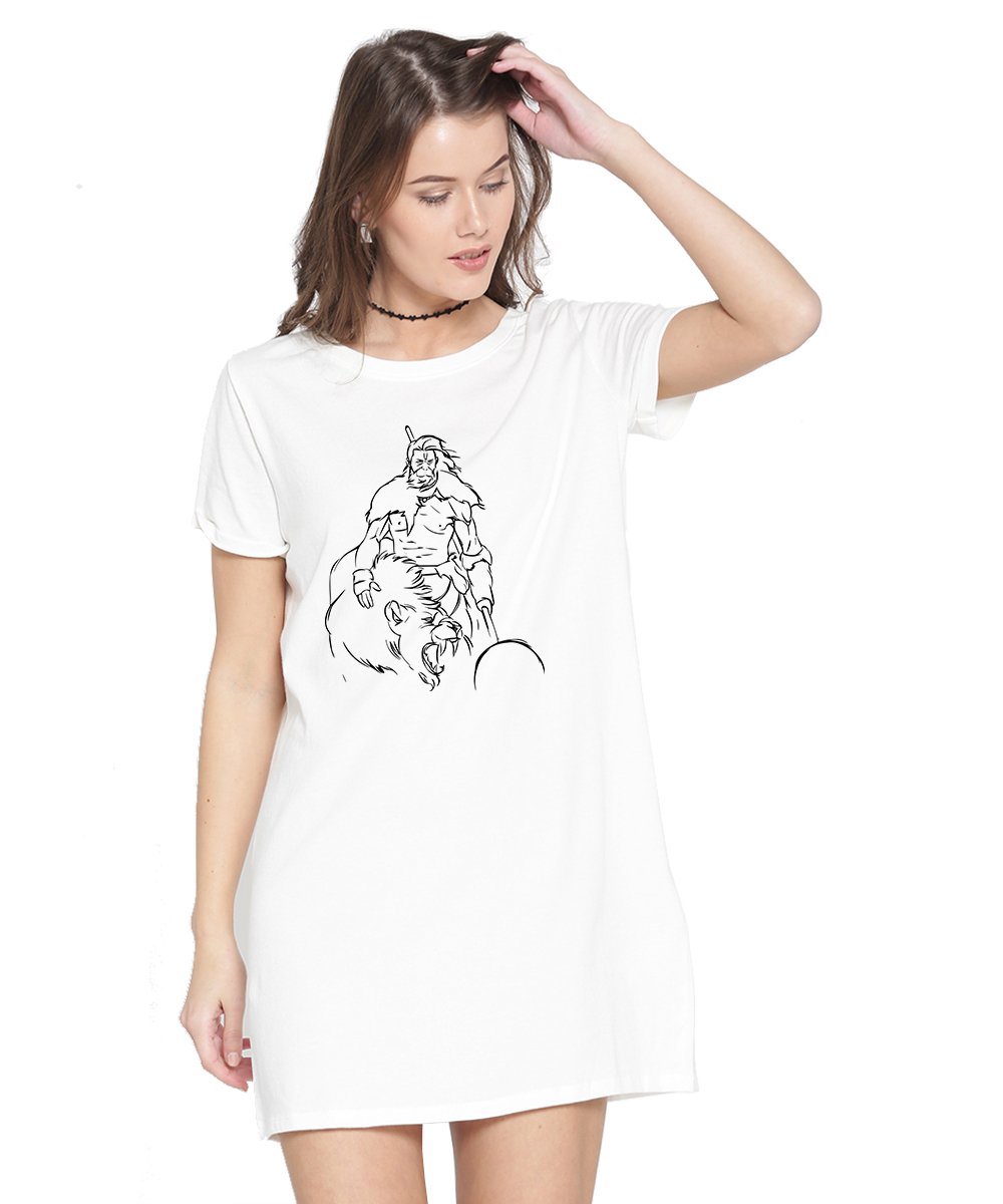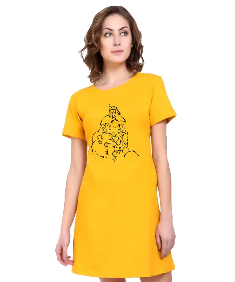 Caseria Women's Cotton Biowash Graphic Printed T-Shirt Dress with side pockets - Lion Power