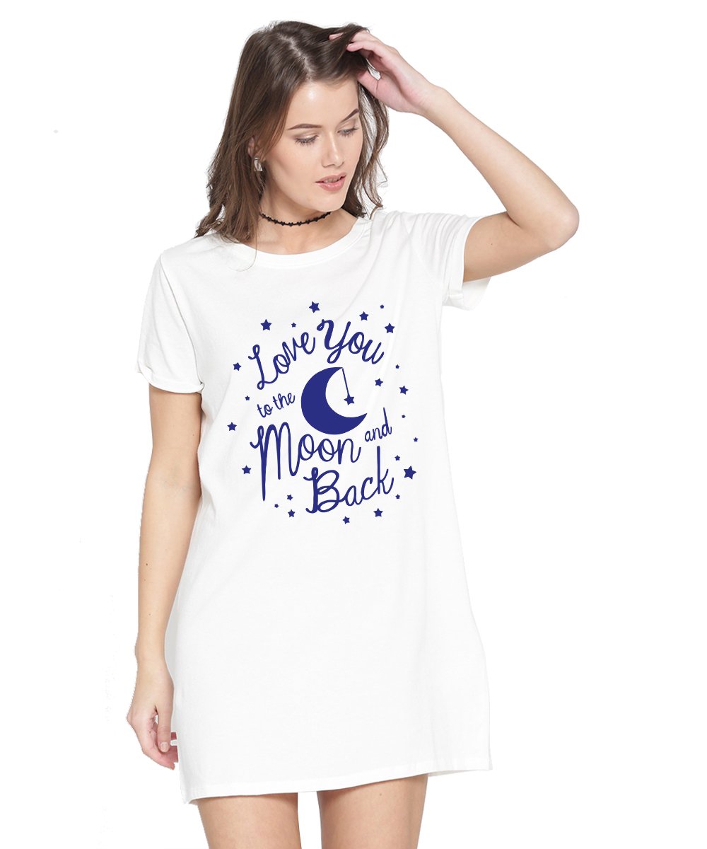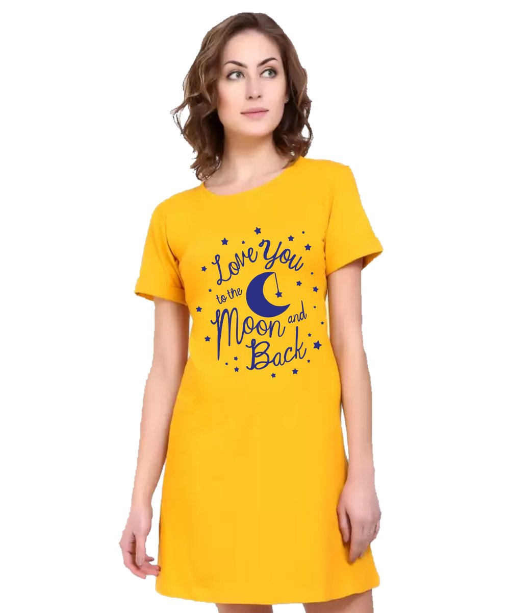 Caseria Women's Cotton Biowash Graphic Printed T-Shirt Dress with side pockets - Love Moon And Back
