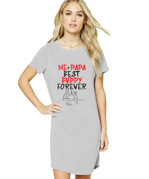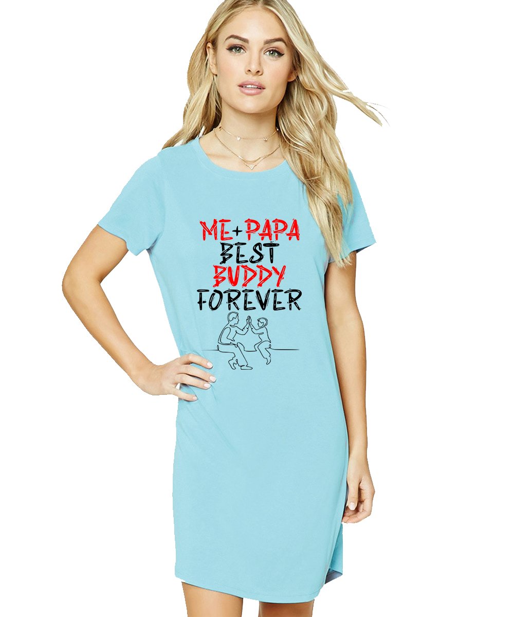 Caseria Women's Cotton Biowash Graphic Printed T-Shirt Dress with side pockets - Me Papa Buddy