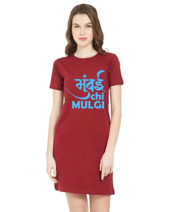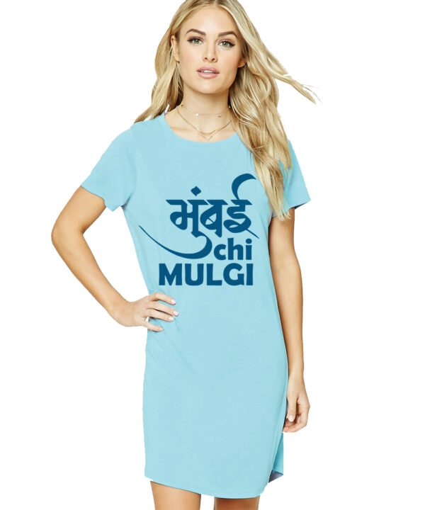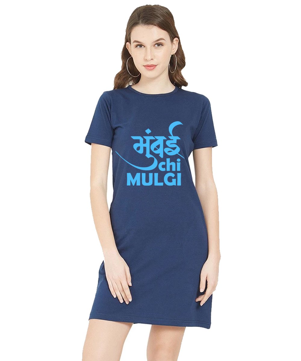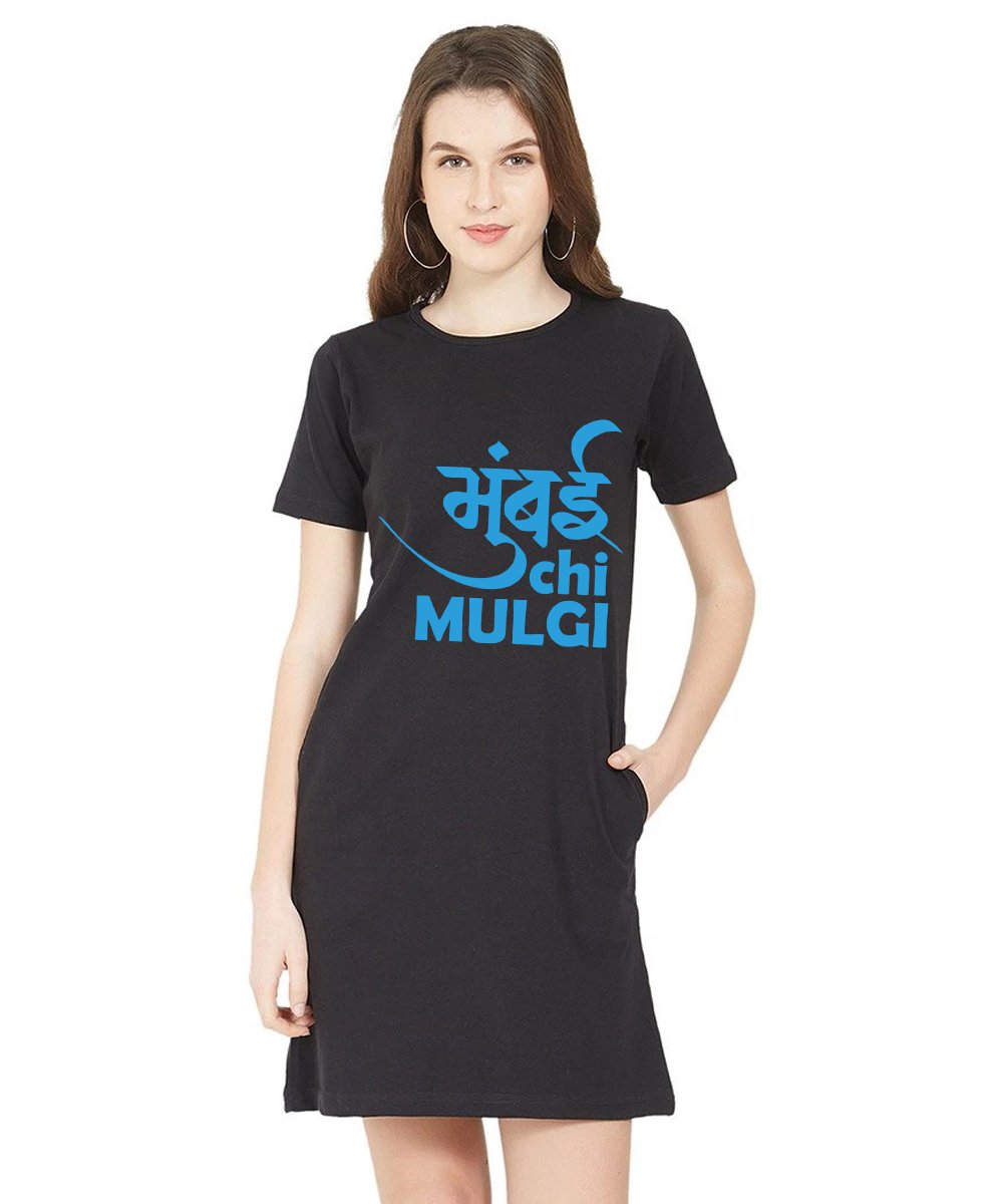 Caseria Women's Cotton Biowash Graphic Printed T-Shirt Dress with side pockets - Mumbai Chi Mulgi
