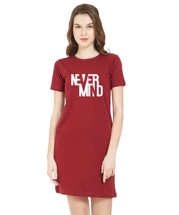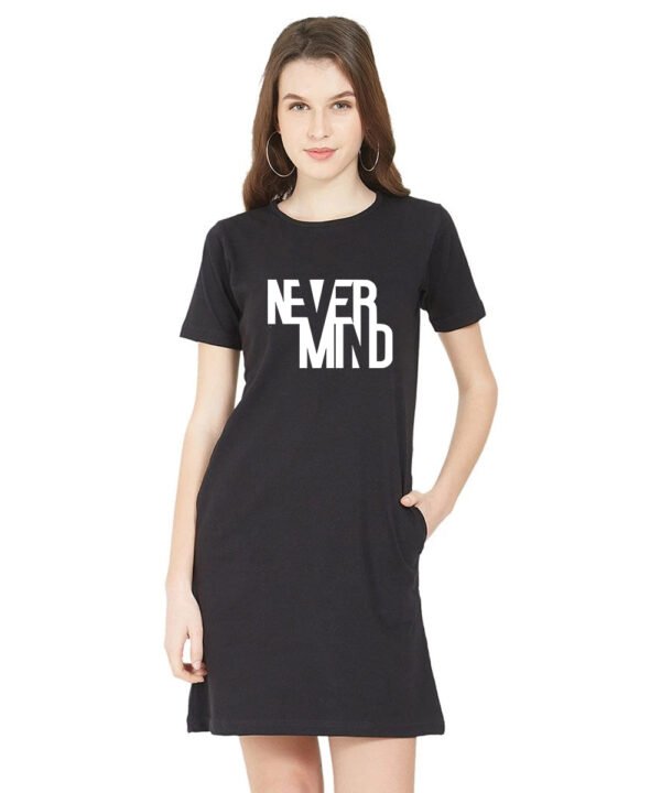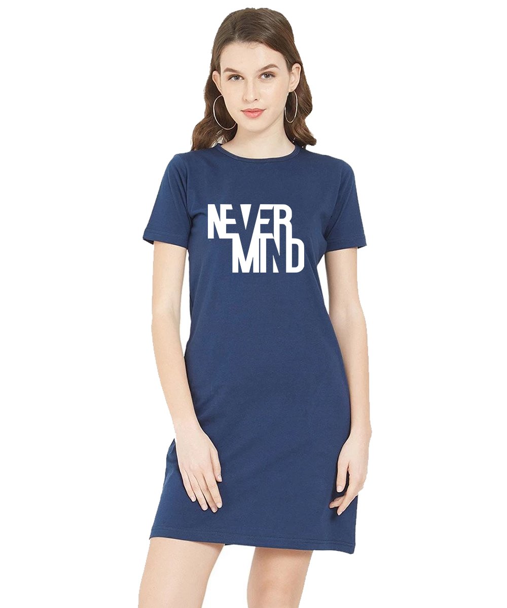 Caseria Women's Cotton Biowash Graphic Printed T-Shirt Dress with side pockets - Never Mind