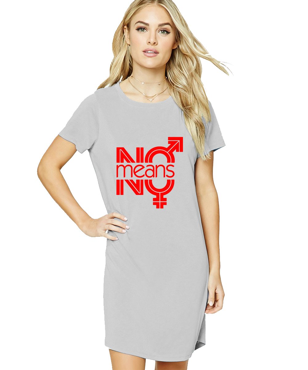 Caseria Women's Cotton Biowash Graphic Printed T-Shirt Dress with side pockets - No Means No